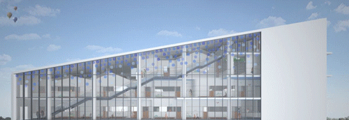 既像钥匙又像棒棒糖的建筑造型,寓意着“幼儿园是开启人生的第一把钥匙”,同时棒棒糖的造型也能让孩子们感到格外亲切。