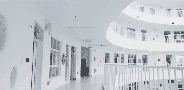 内部空间以白色为主,中庭以圆环路径增加了建筑的流畅性和流动性,整体看着非常舒适。