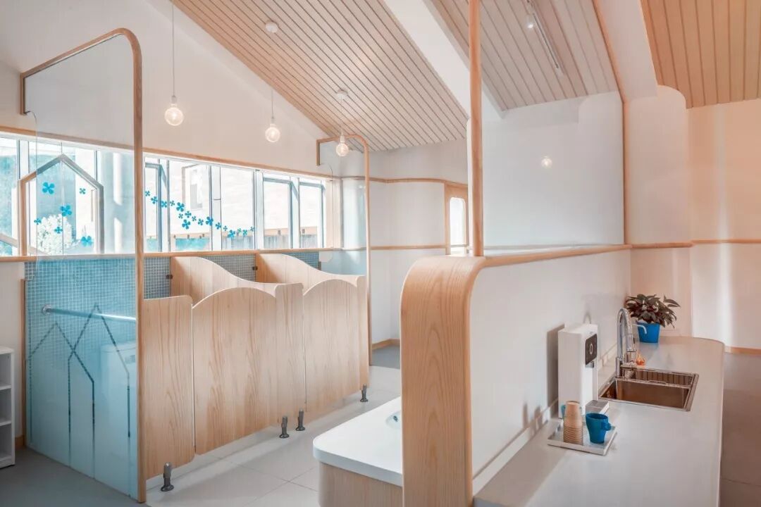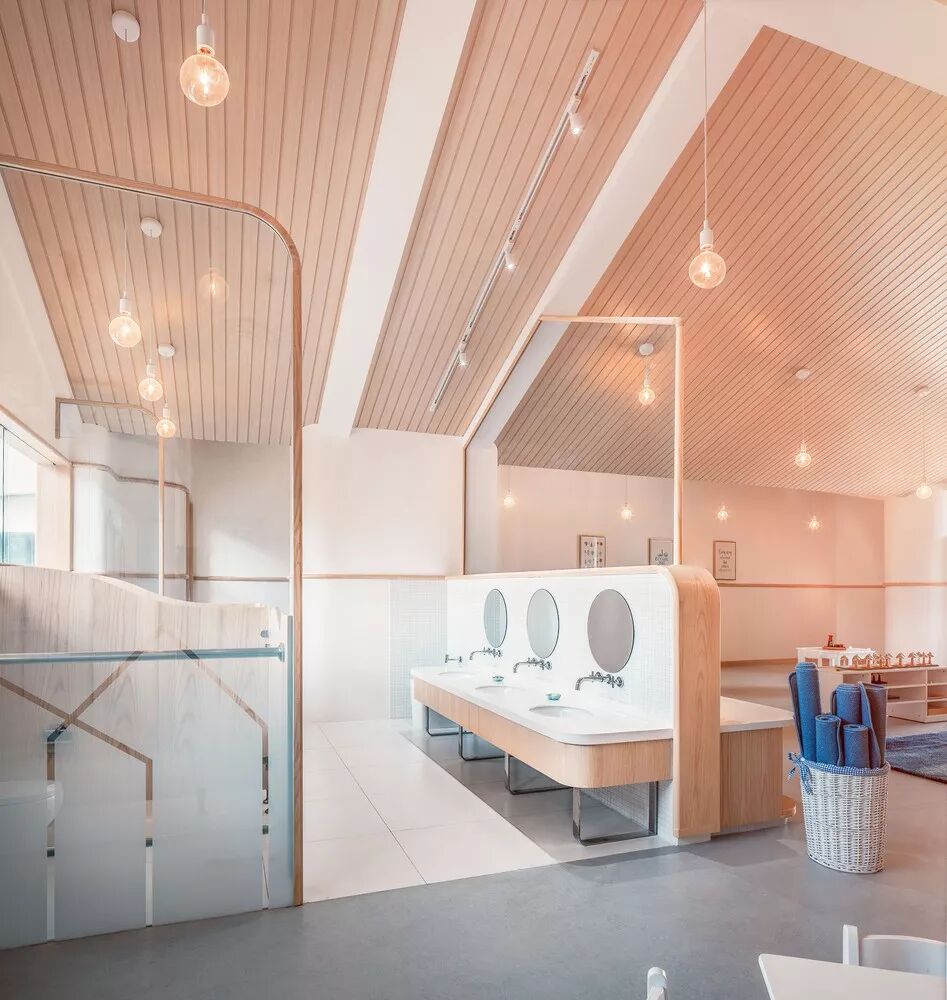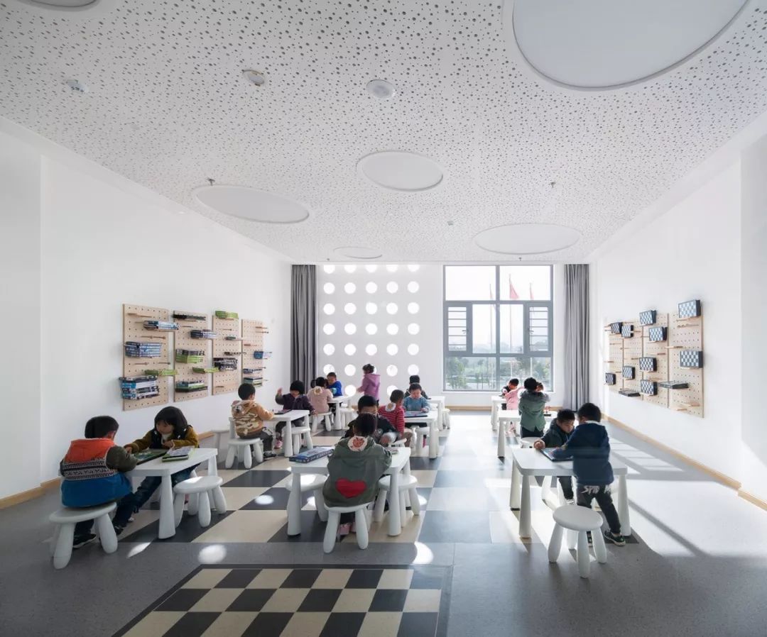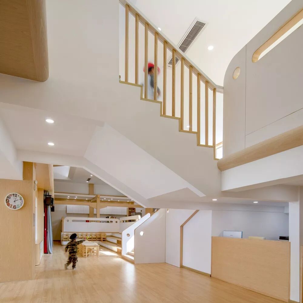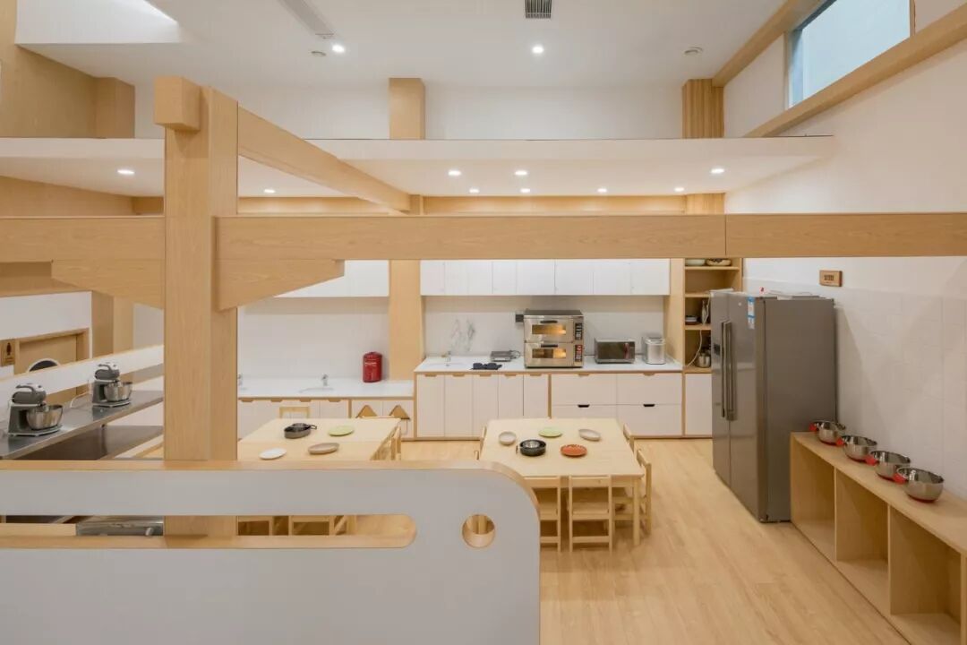 以原木色和白色为背景的教育空间,第一眼看到就觉得特别舒服。