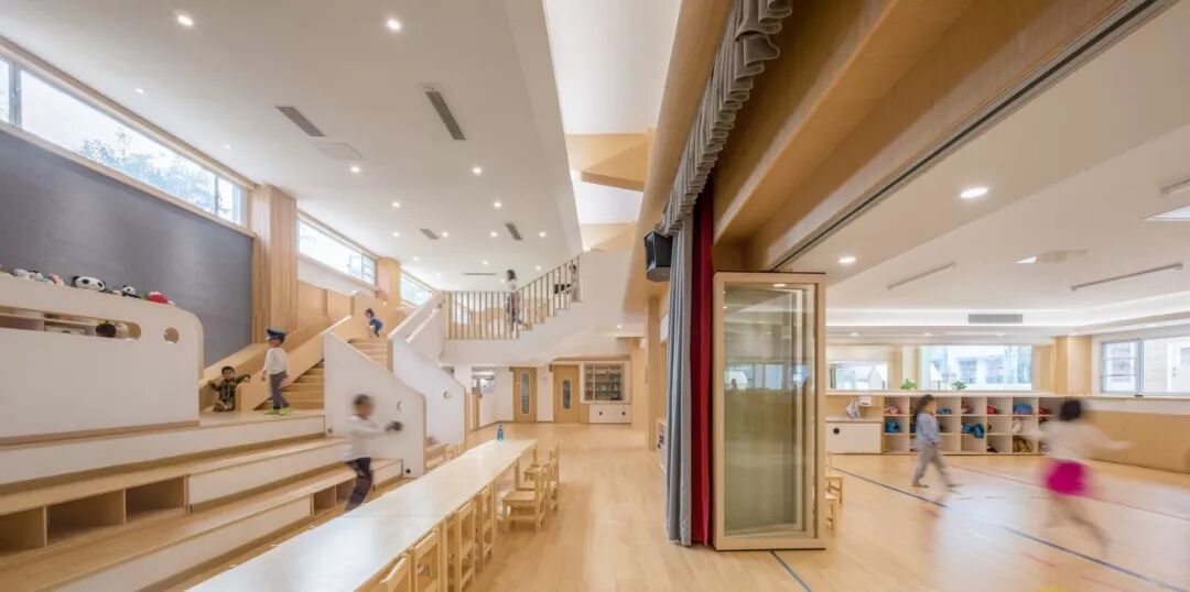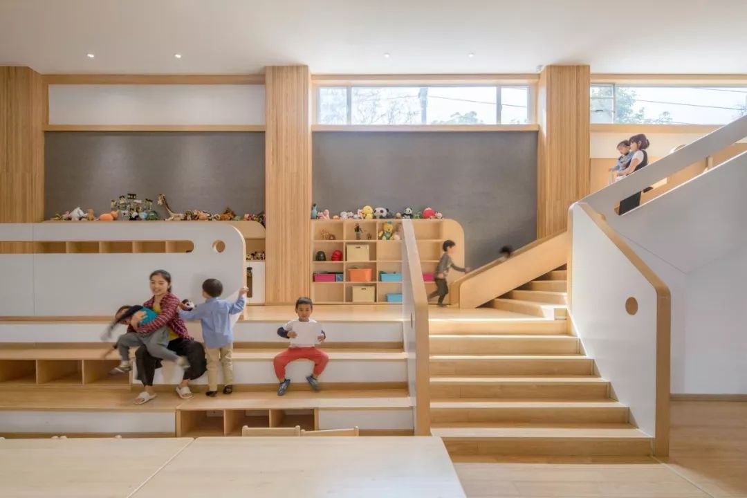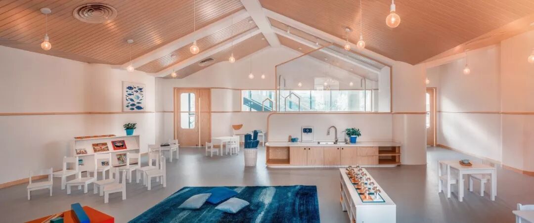设计师将蒙特梭利的教育理念与建筑设计相结合,根据孩子所需的比例进行改造,创造出一个更轻松、合理且安全的空间。