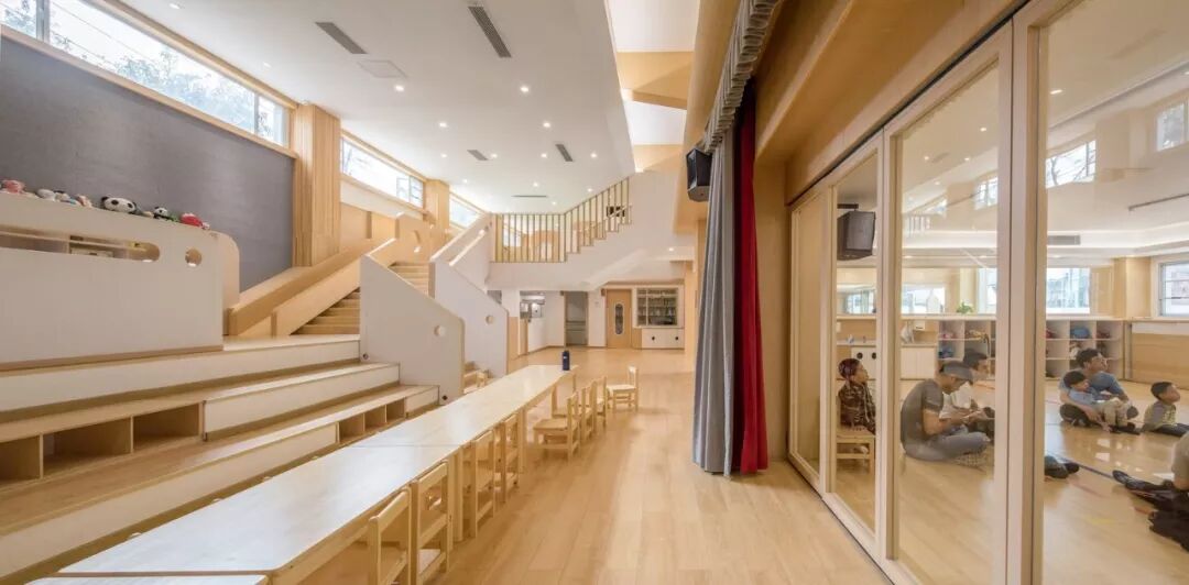 空间了运用大量的玻璃窗,有助于老师随时观察到孩子们的活动情况。