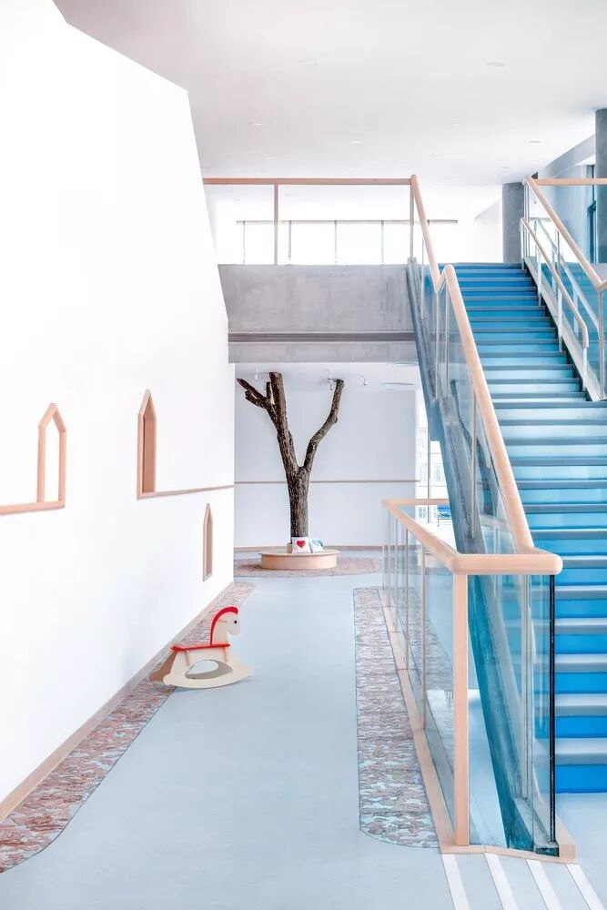设计师用色彩创造出了一个诗意且具有艺术的世界,消除了原本钢筋水泥带来的冰冷感。孩子们被美包围的同时,也逐渐培养着审美的能力。