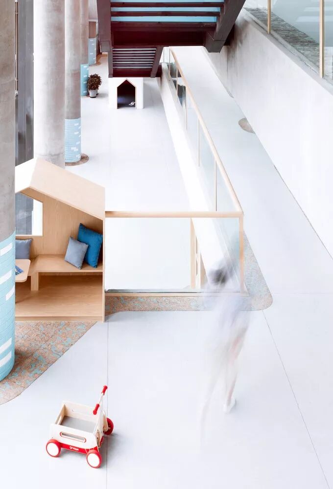 这所幼儿园是由一个拥有4层楼的开放式办公空间改造而成的。