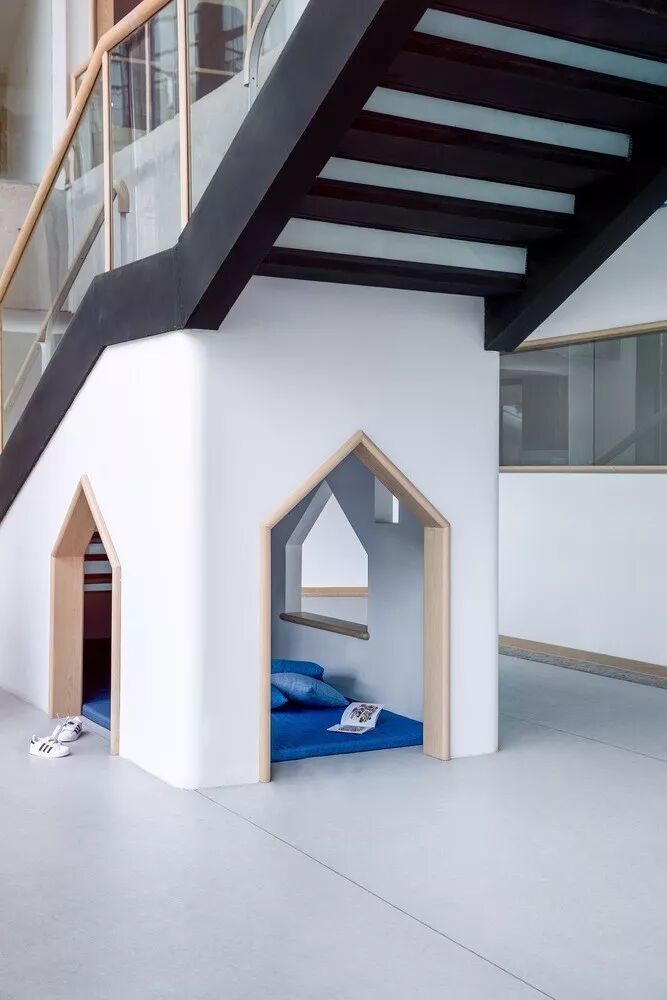 在设计公共区域时,设计师还加入了许多小房屋的设计,为孩子们提供了专属私人空间,让他们感受到更多的归属感和安全感。