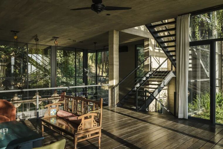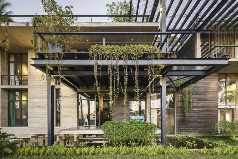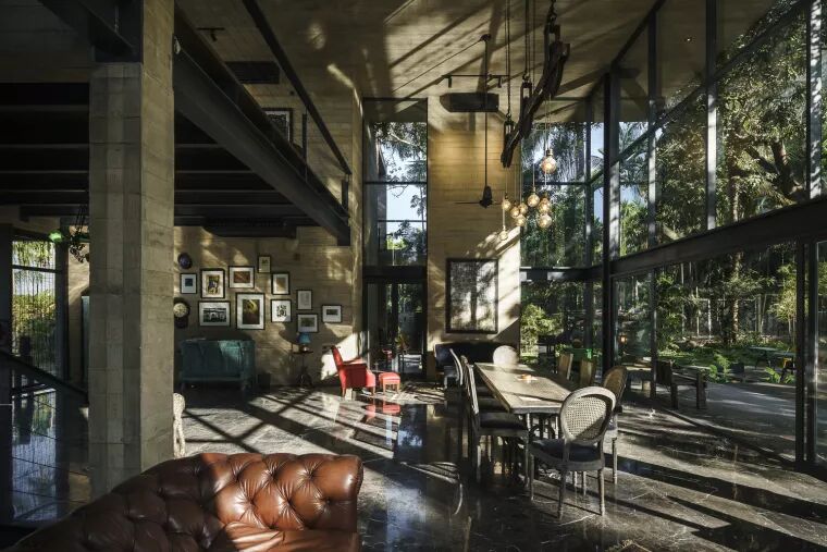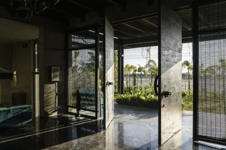 中央部分是RCC建筑中的钢结构。该住宅的混凝土地板为平板结构,其地板饰面具有大理石,木材和瓷砖的变化。地面内部使用黑色抛光大理石制作周围树木的反射,而古董抛光大理石则放置在室外,以使地板不滑。