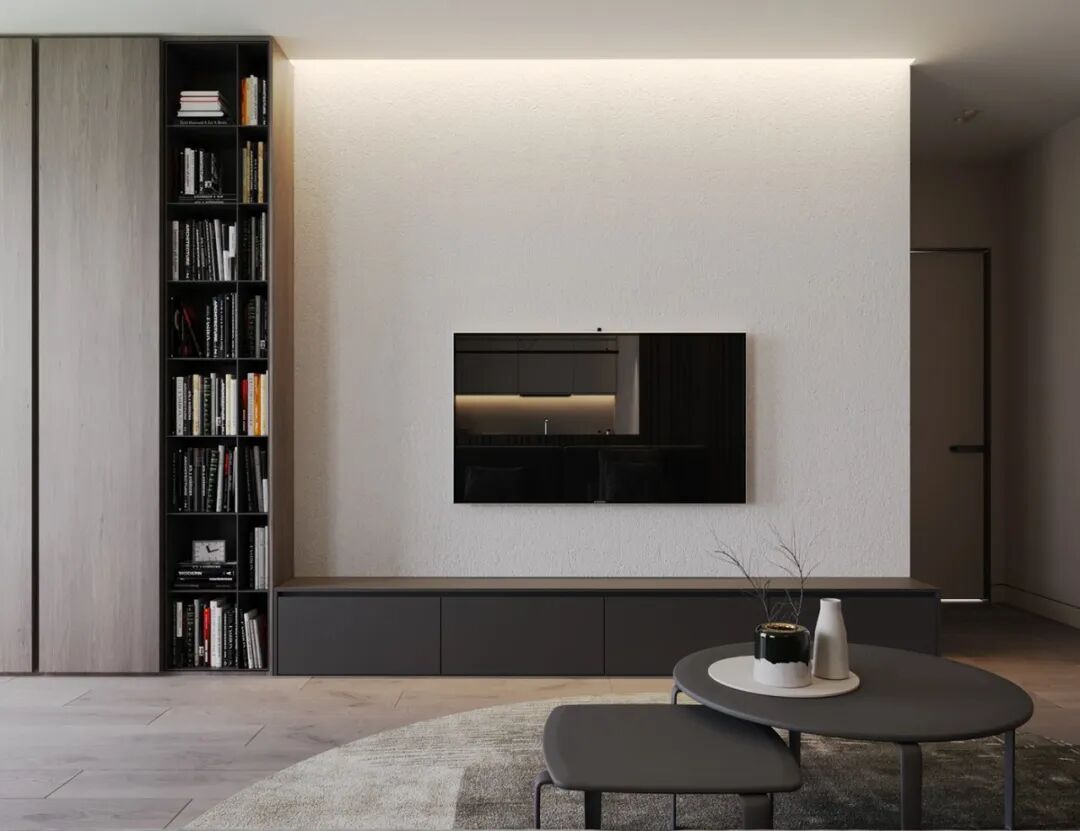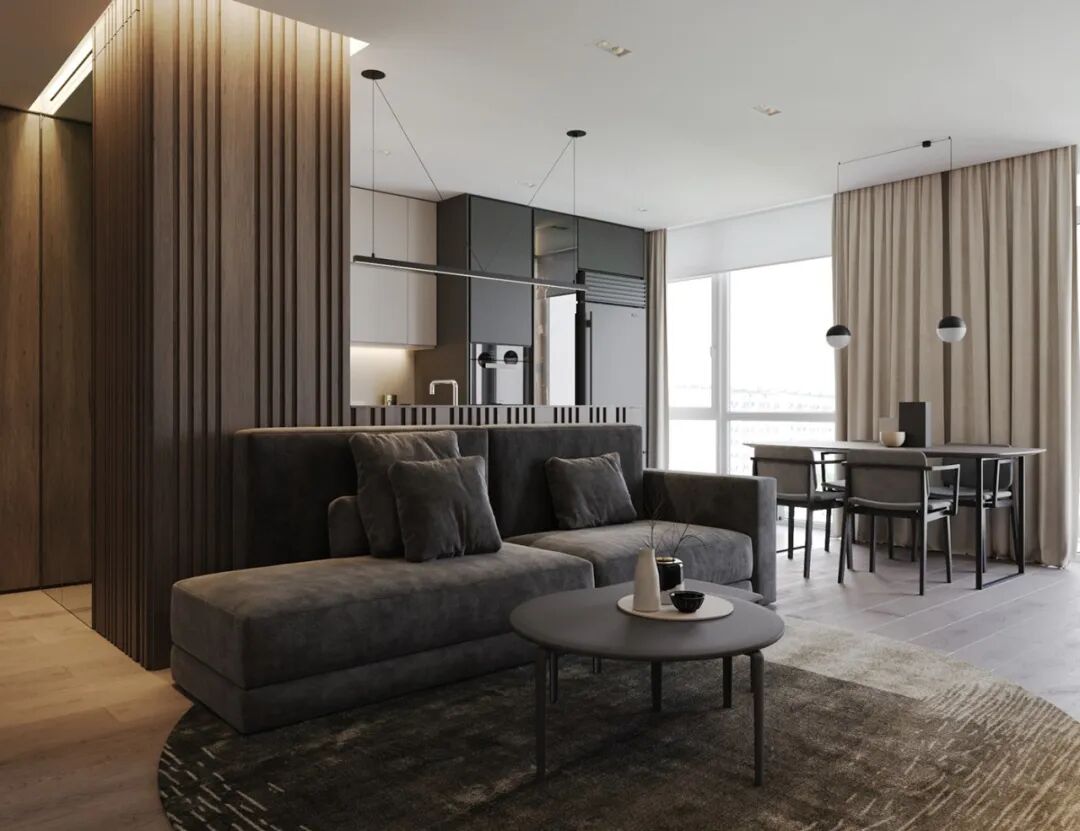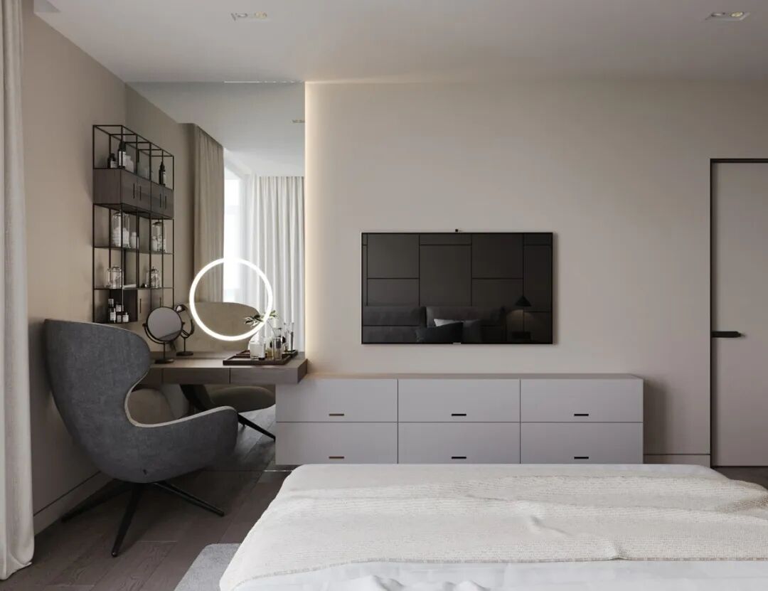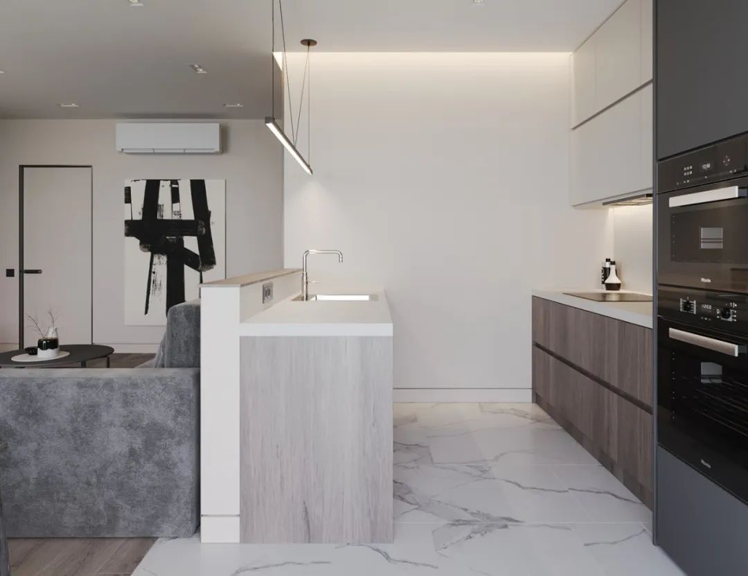 运用灰色、木色、米色、留白将基本的颜色搭配得当,深化了空间的质感,在其中使用其他强调色让整个空间变得高级。