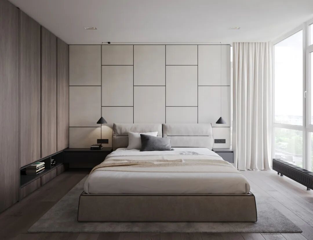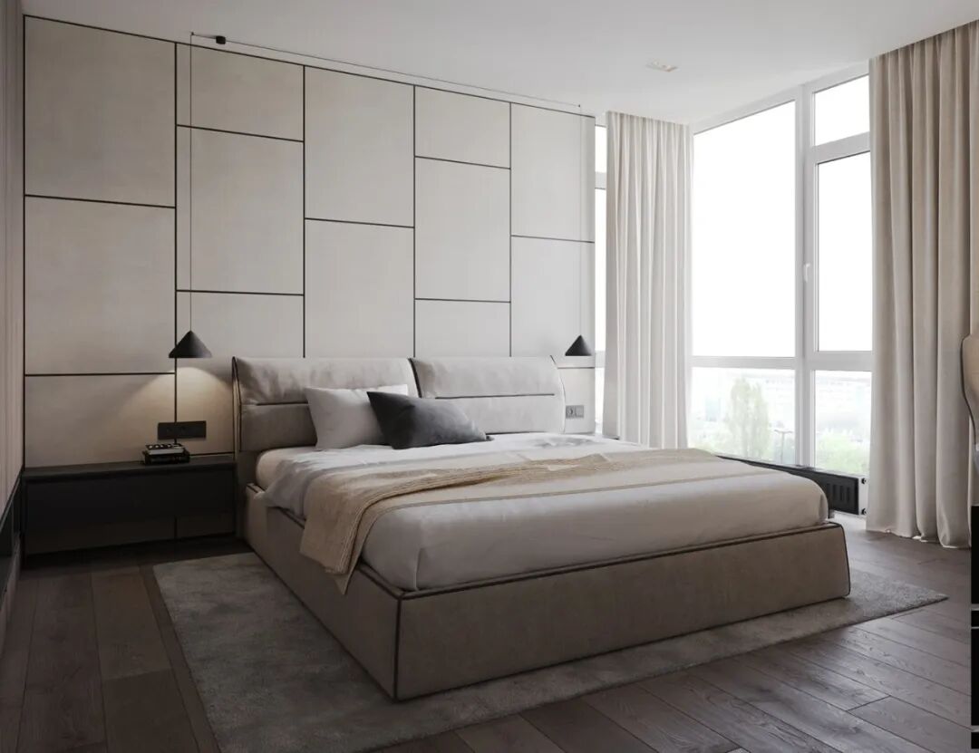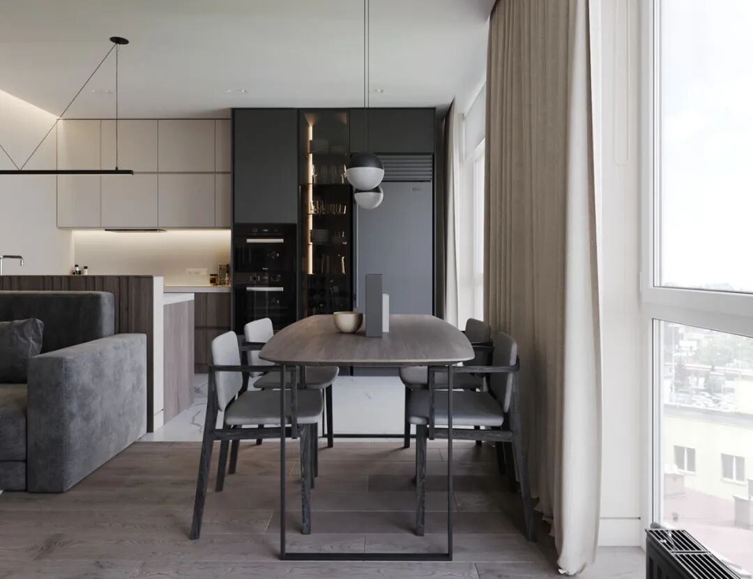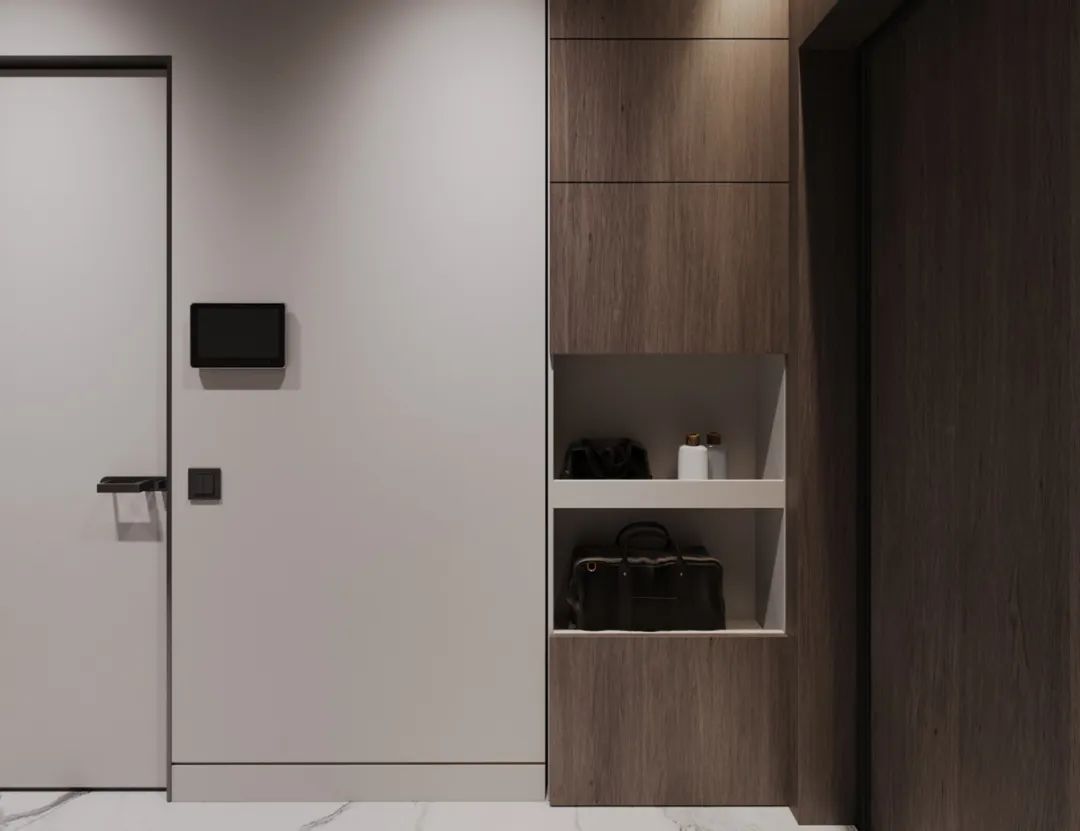 运用灰色、木色、米色、留白将基本的颜色搭配得当,深化了空间的质感,在其中使用其他强调色让整个空间变得高级。