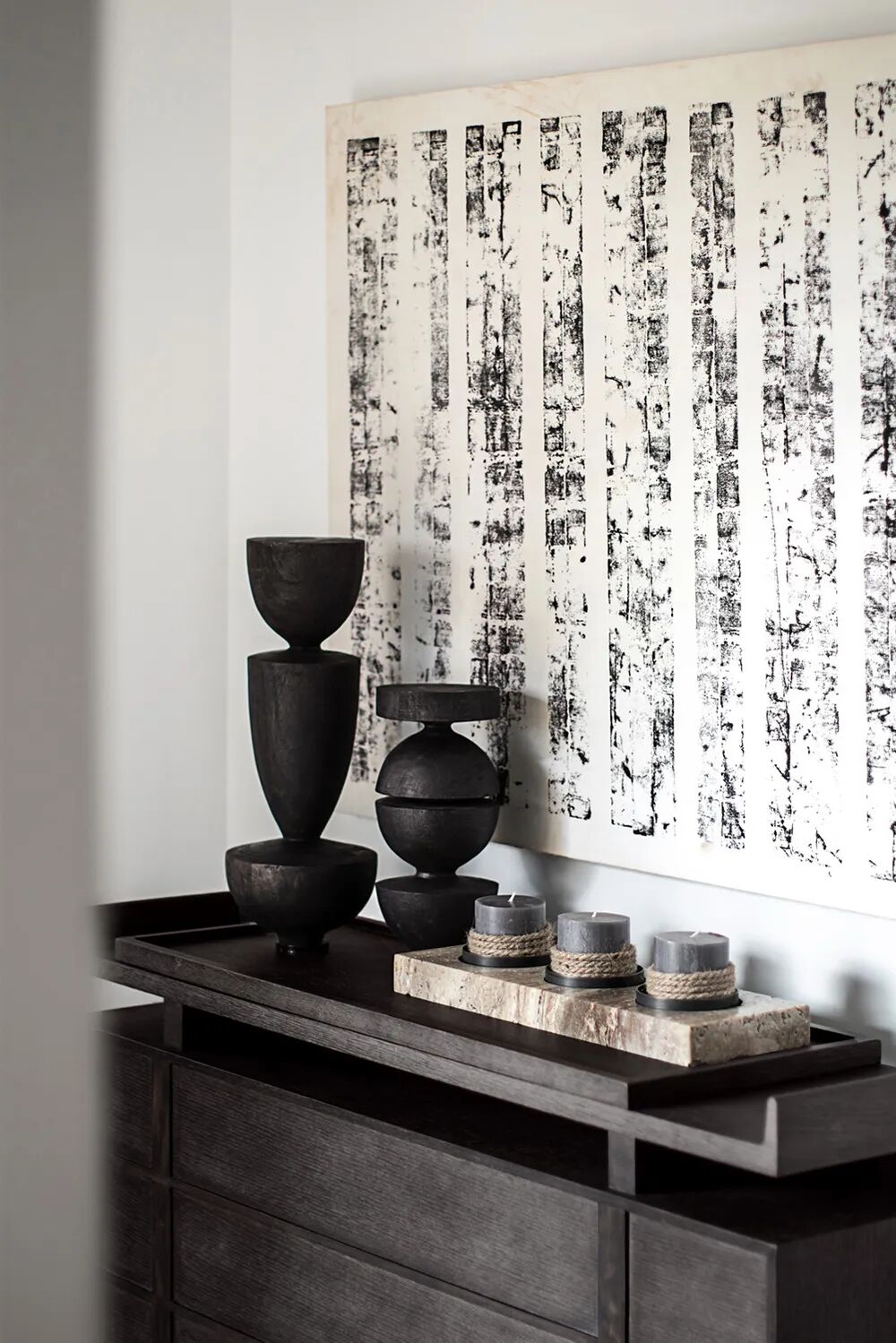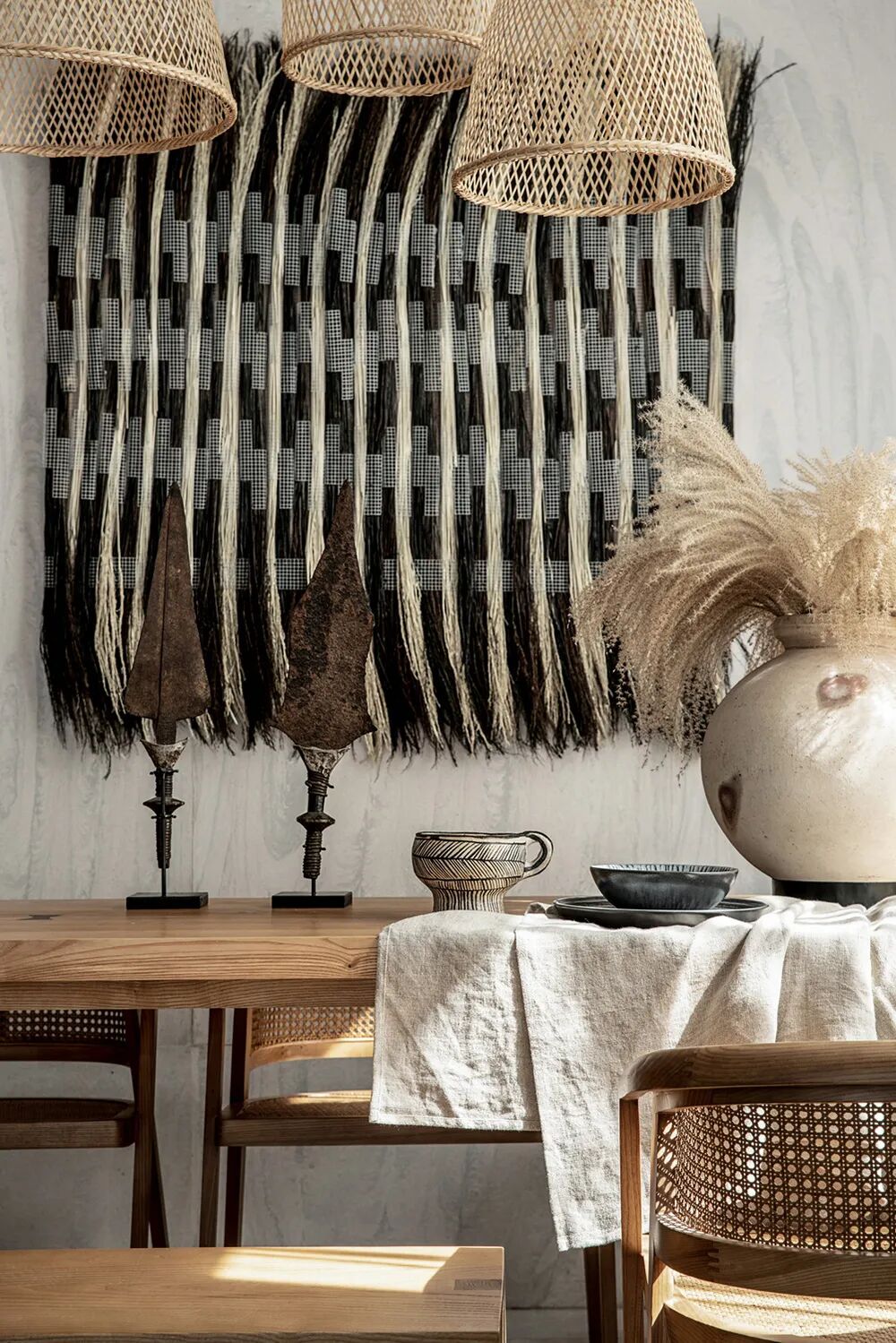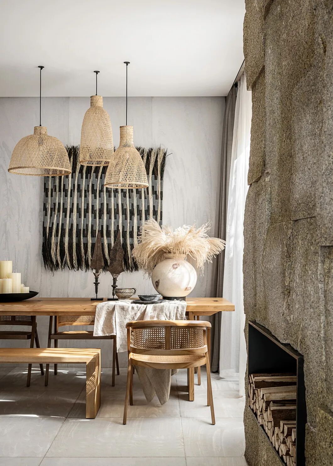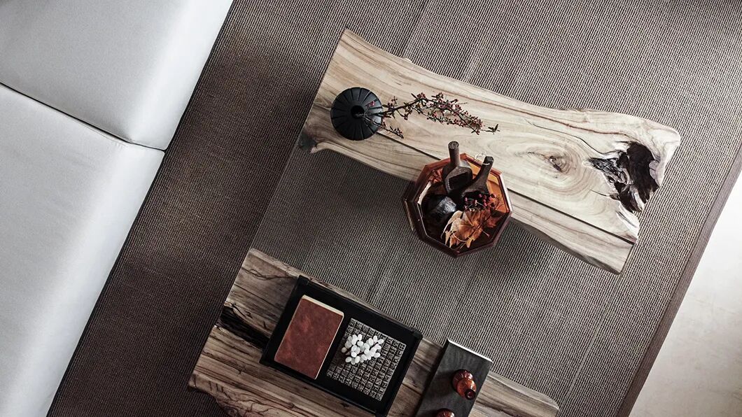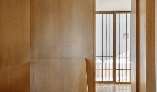 向自然借来材料,木头是木头的肌理,只是用时间“打磨”出不同的层次,形成物与物之间的“波纹”,制造阴翳,也制造了空间的流动。