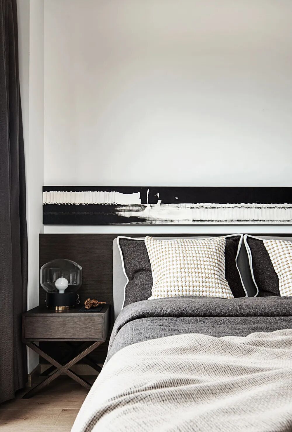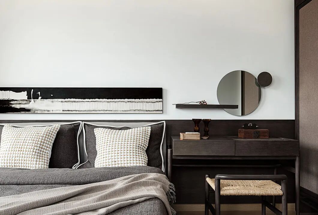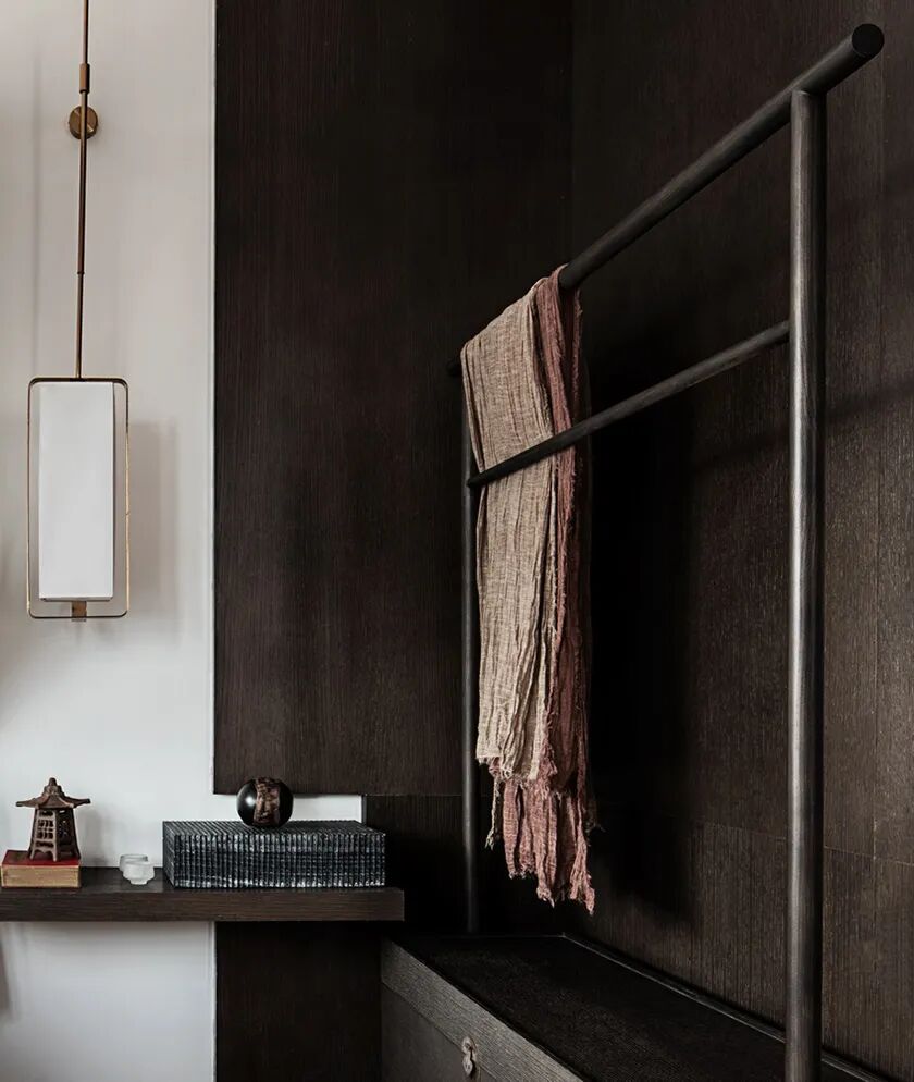 较之“寂”的轻和浅,本案从色彩和材质的选择上,都更为厚重,从空间到家具,线条平滑起伏,却在形态上尽可能地远离被广泛识别的标签。