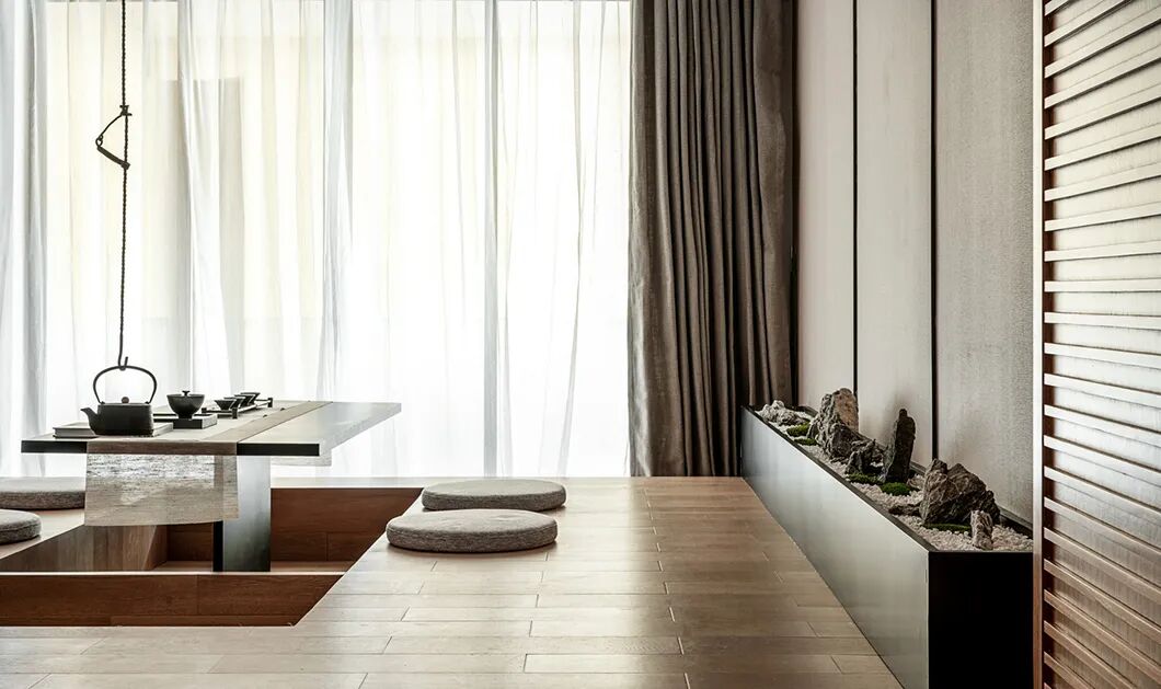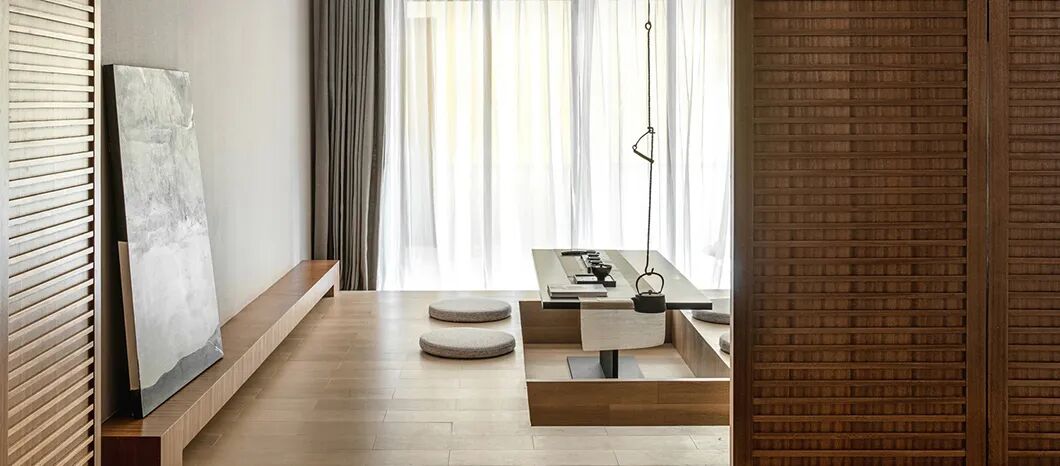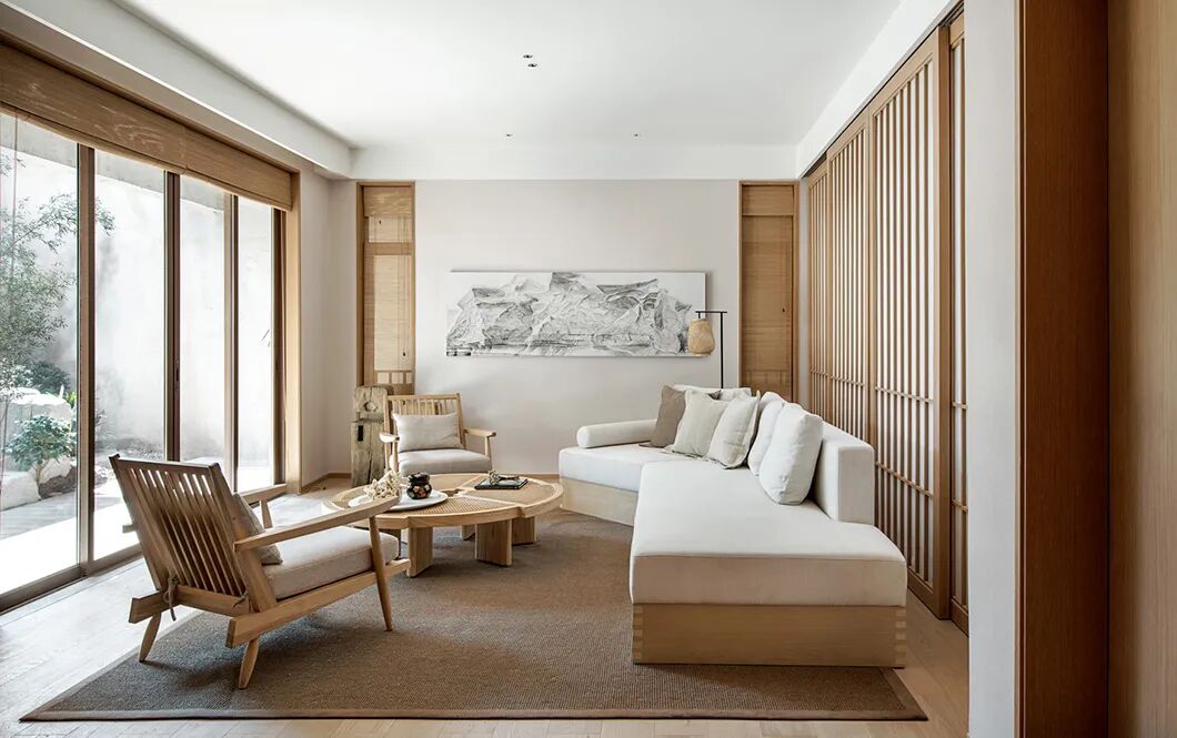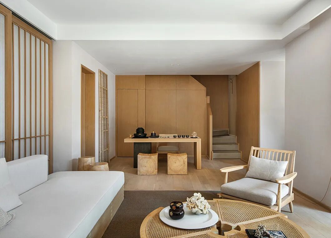 在这个空间中,色彩和材质的运用秉承日本传统美学中对自然形态的推崇,营造澄净如洗的肃净感。