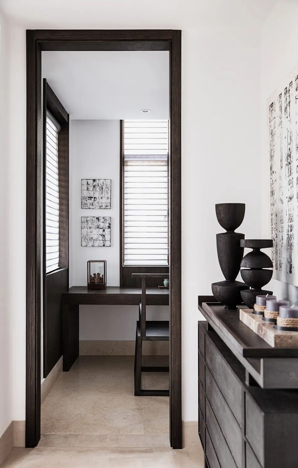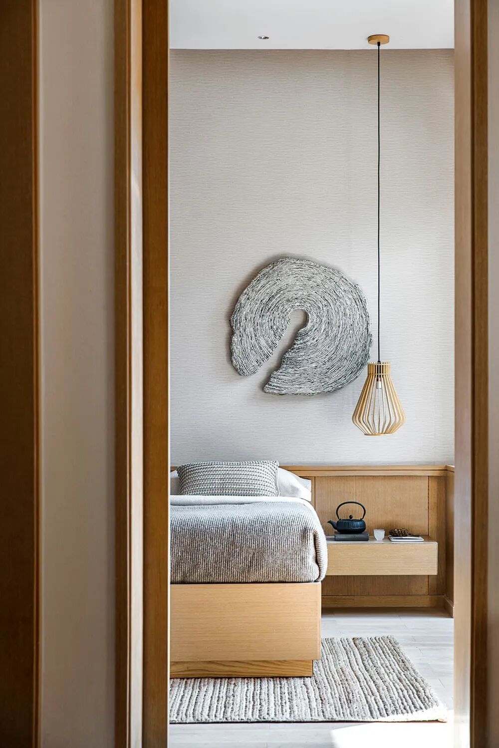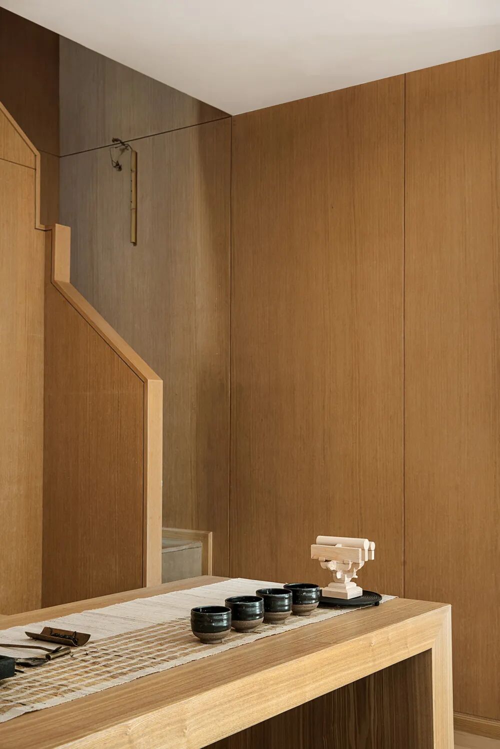 在这个空间中,色彩和材质的运用秉承日本传统美学中对自然形态的推崇,营造澄净如洗的肃净感。