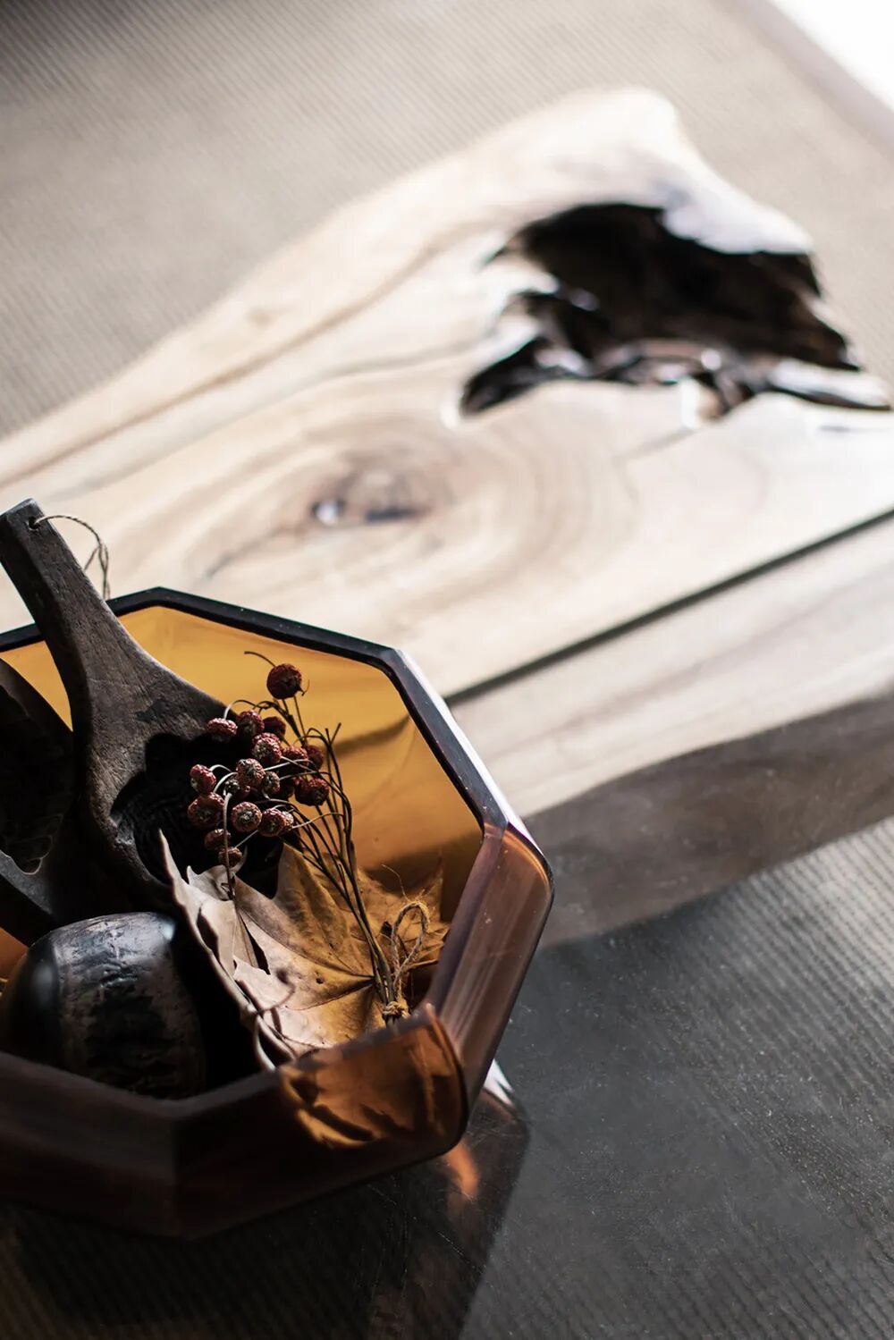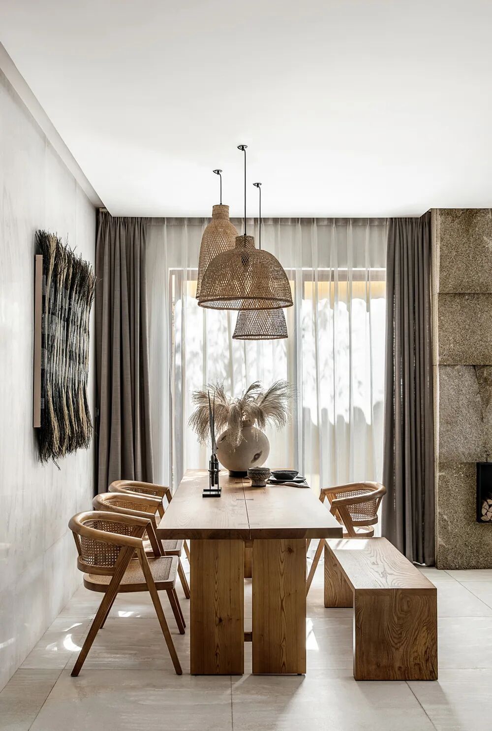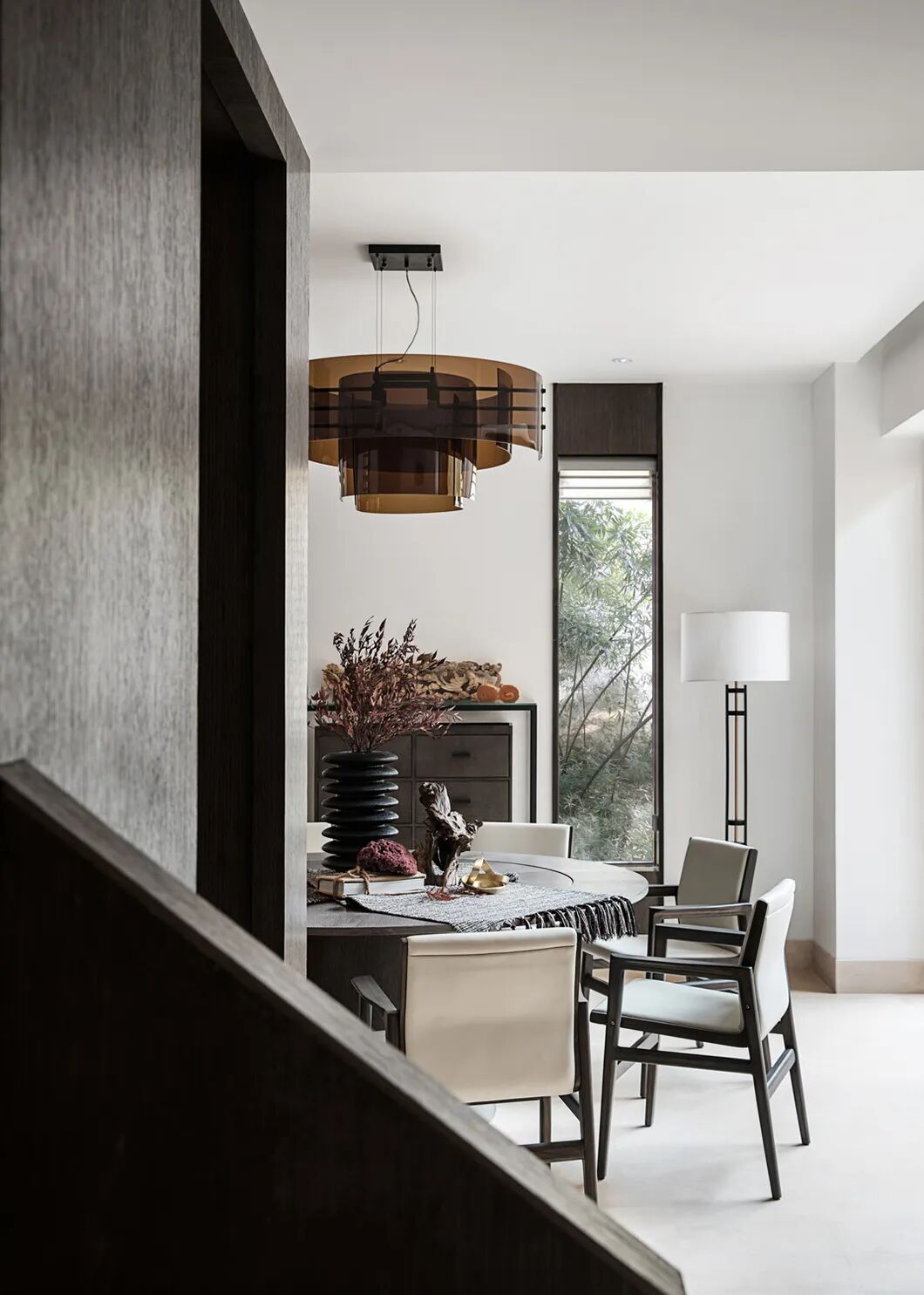 向山开窗,在这一方观云之境中,纵享水光山色沉淀美景的轮换,等春来,待秋去,随意从山间拾取的一截赤阳子,不加修饰,随意散漫,也可以成为客厅一处端景。