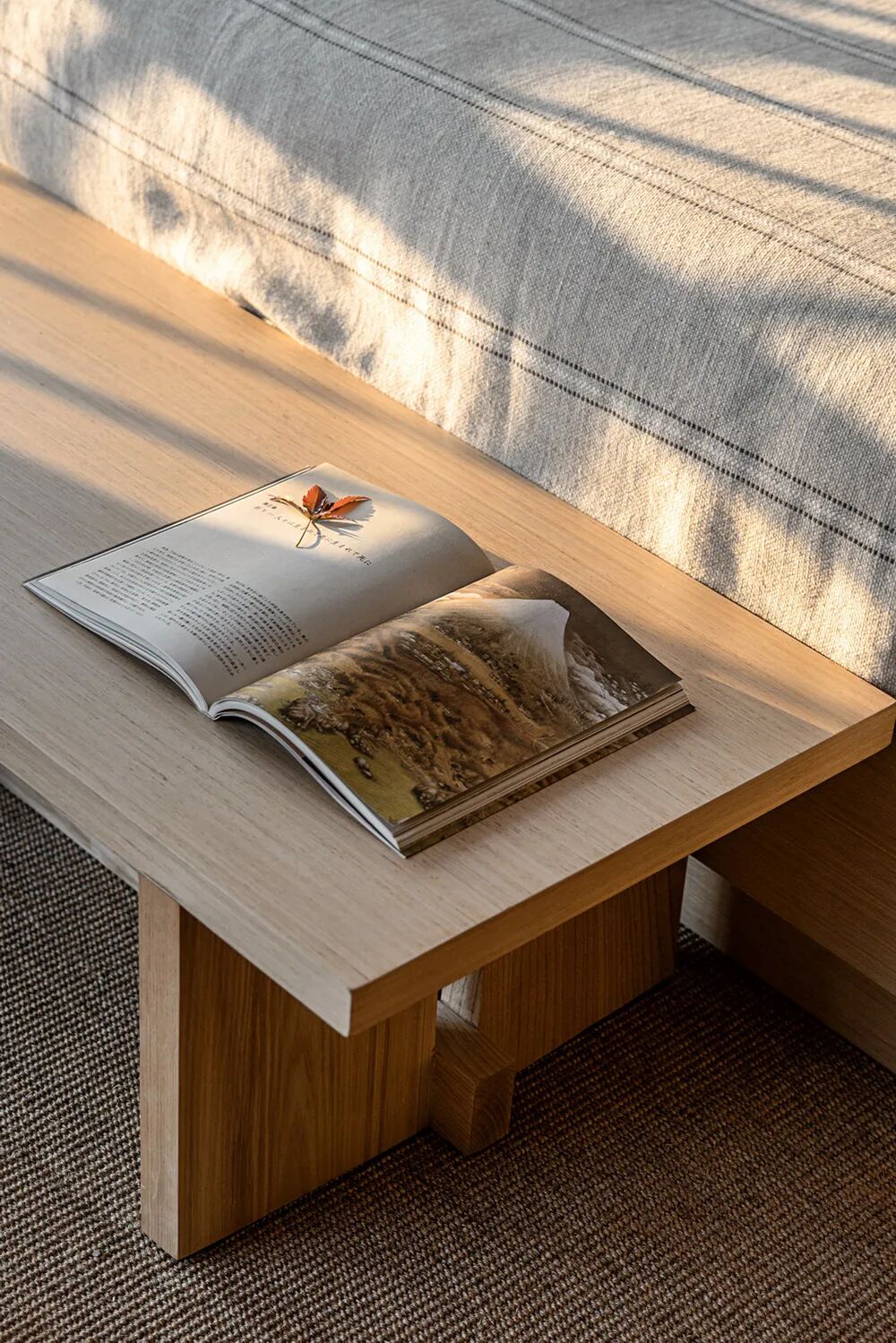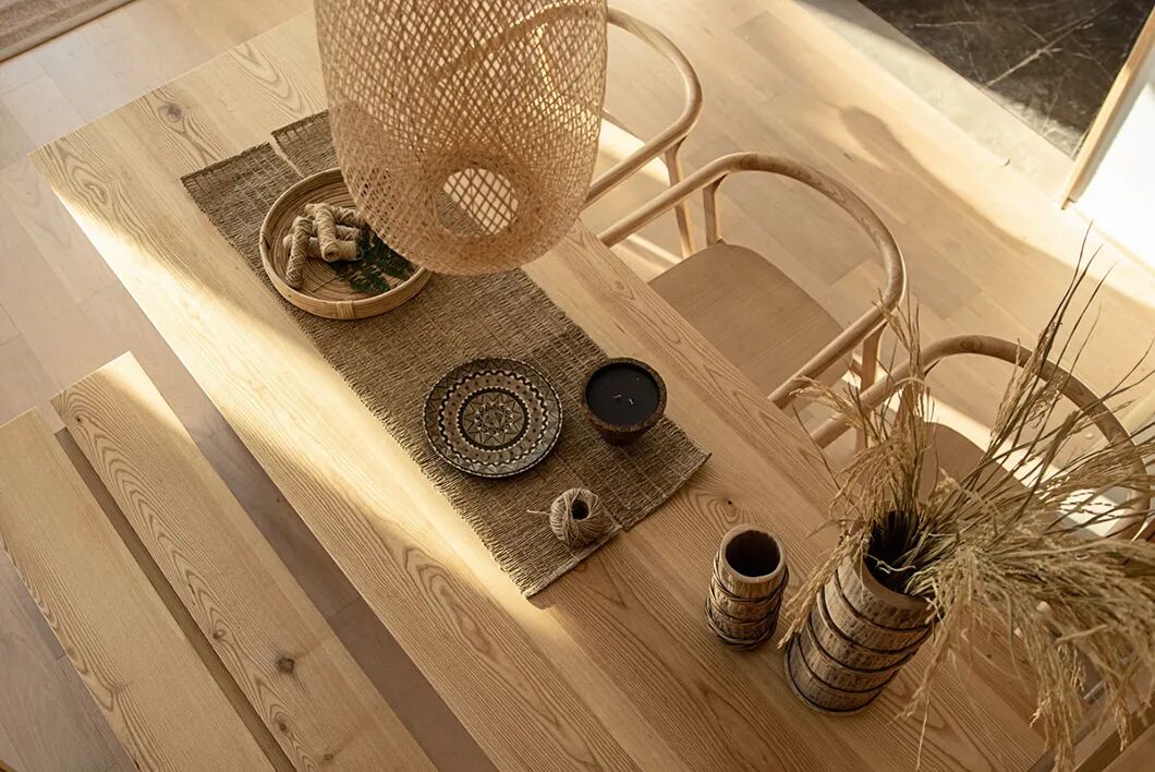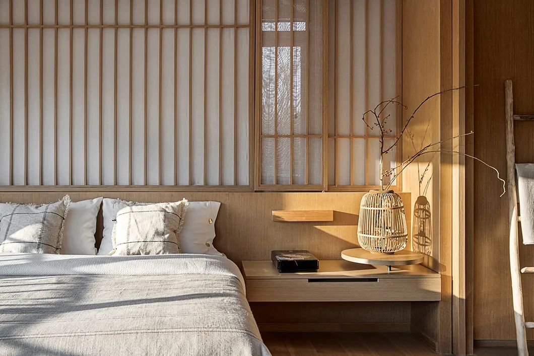 日光半斜,透过半透的樟子纸,洒下朦胧的静谧,木材自然的清香,被光影催化,弥漫在空间之中,物件本身的美感被极致地放大,置身其中,仿佛所有潜在的怀旧、怀乡、回归自然的情绪,都得到了补偿。