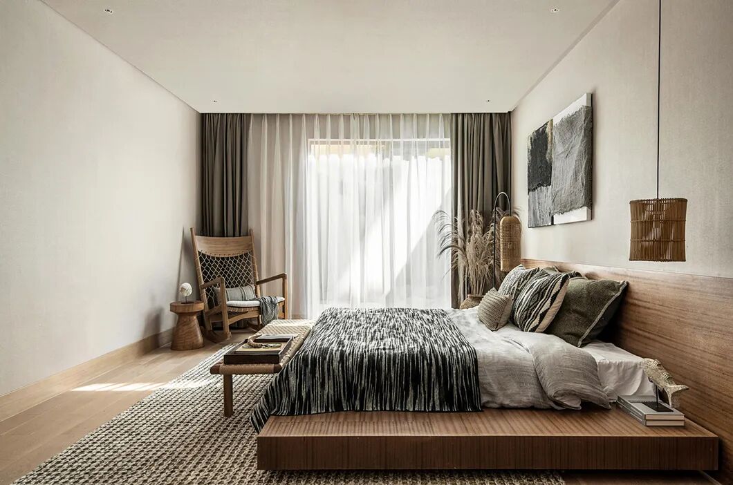 从岛屿取色,营造出天然的朴素感。打开墙面,让光和风进来,空间中材质的选择保留了粗粝的质感,仿佛已经在此被海风吹拂多年。