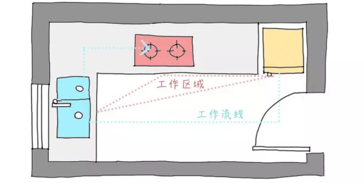 一般这个动线是这样规划的:1从冰箱拿食材—2洗菜—3切菜—4烹饪。