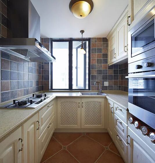 优点:水槽设置在U型中间,在做饭的时候炒菜、切菜及常见工具都可以放在左右两侧,非常方便。