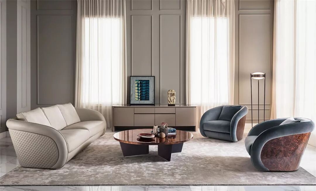 ▲Richmond系列优雅而精致,包括沙发、躺椅和扶手椅。外壳外部结构有木板和皮革组成。内部结构则用皮革、亚麻或丝绒覆盖。