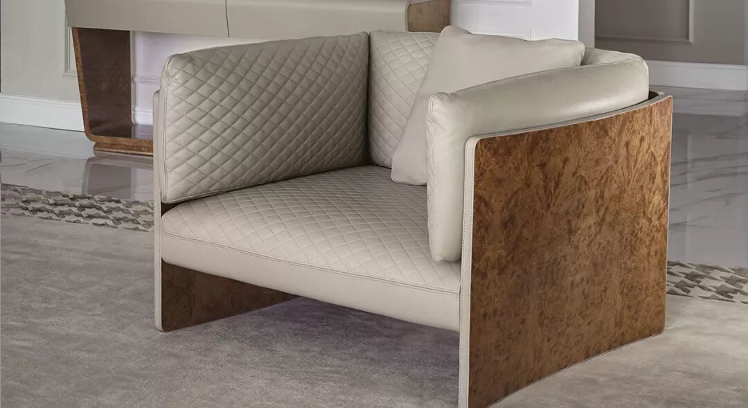 ▲Butterfly系列产品包括沙发和扶手椅,豪华舒适的深入式座椅背面装饰有宾利独特的菱形格纹图案。其几何侧面微微向外延伸,像在欢迎人们入座。