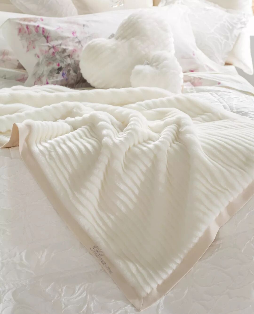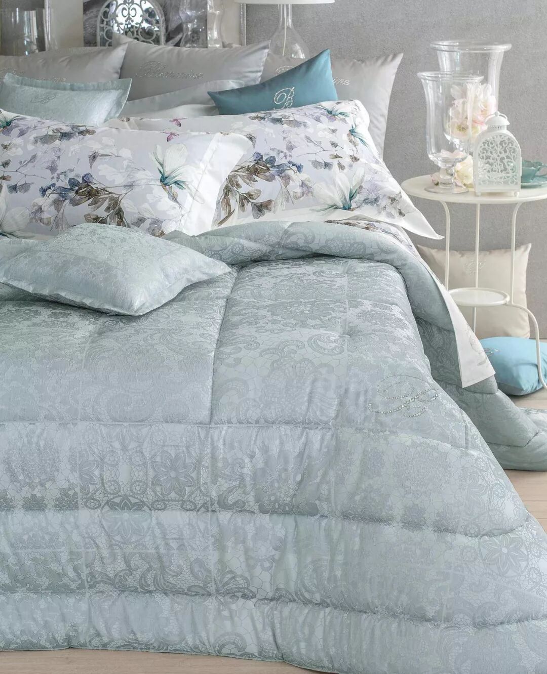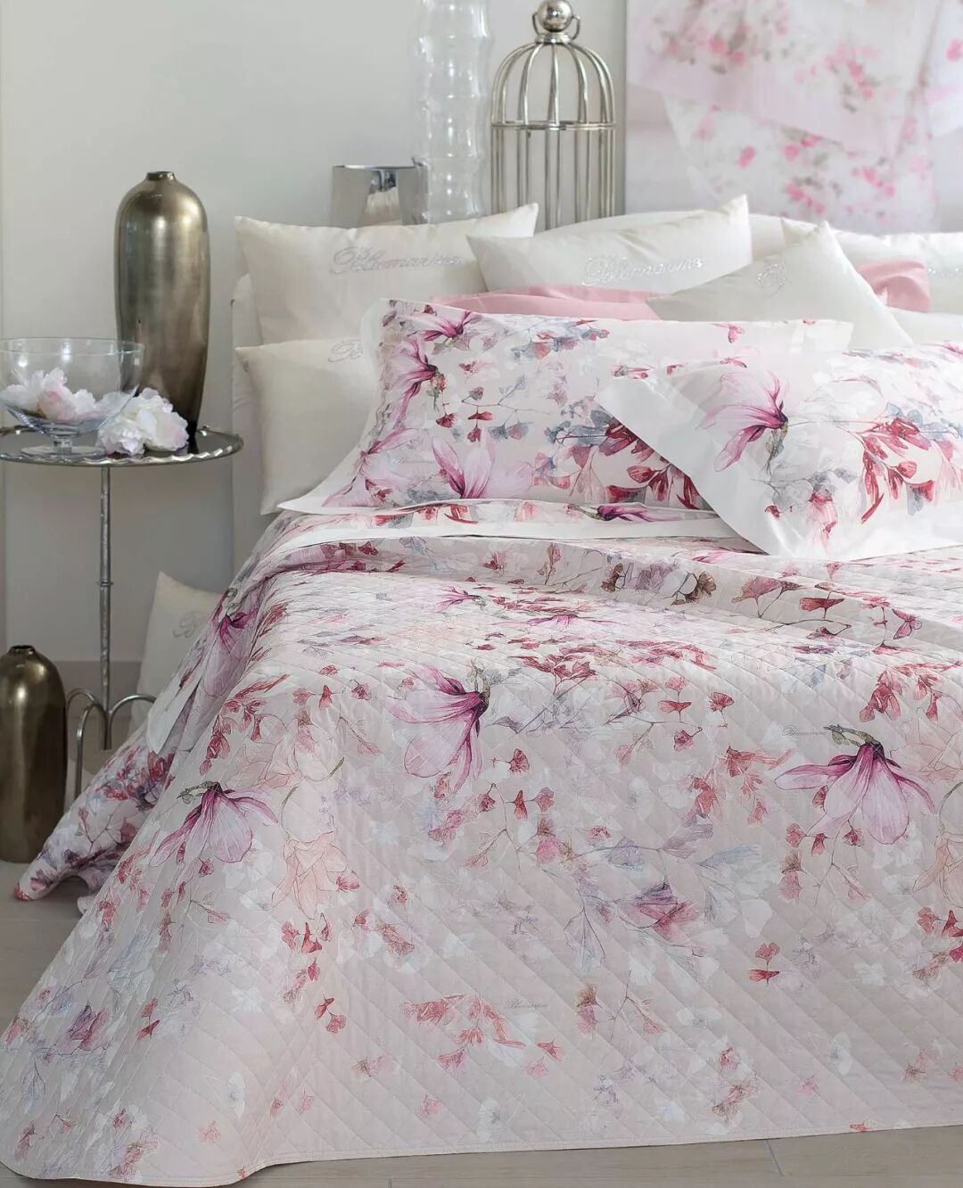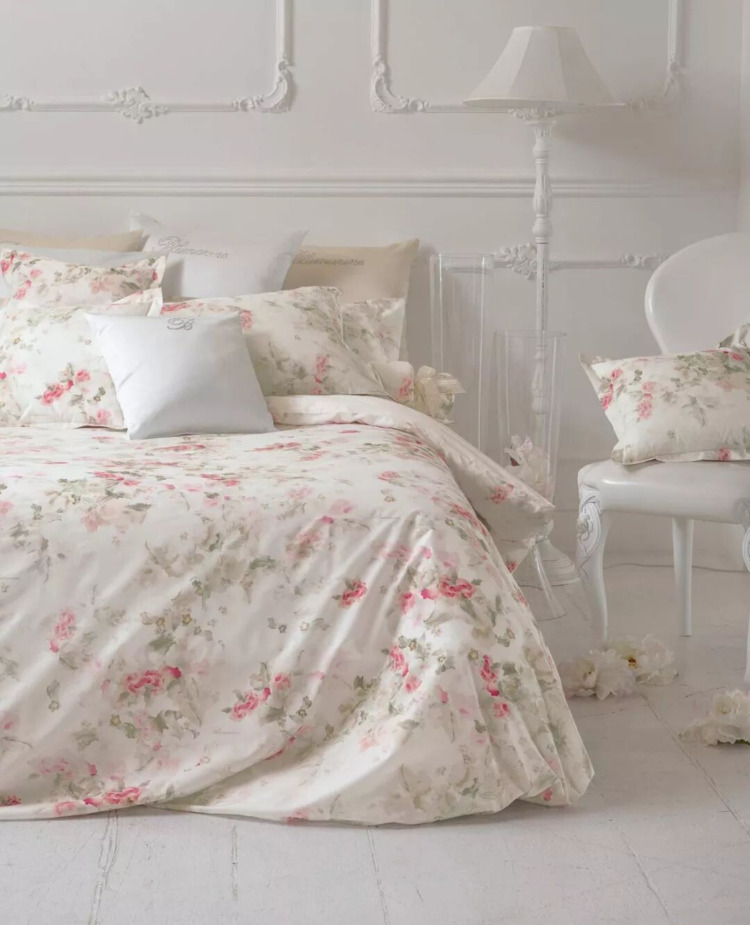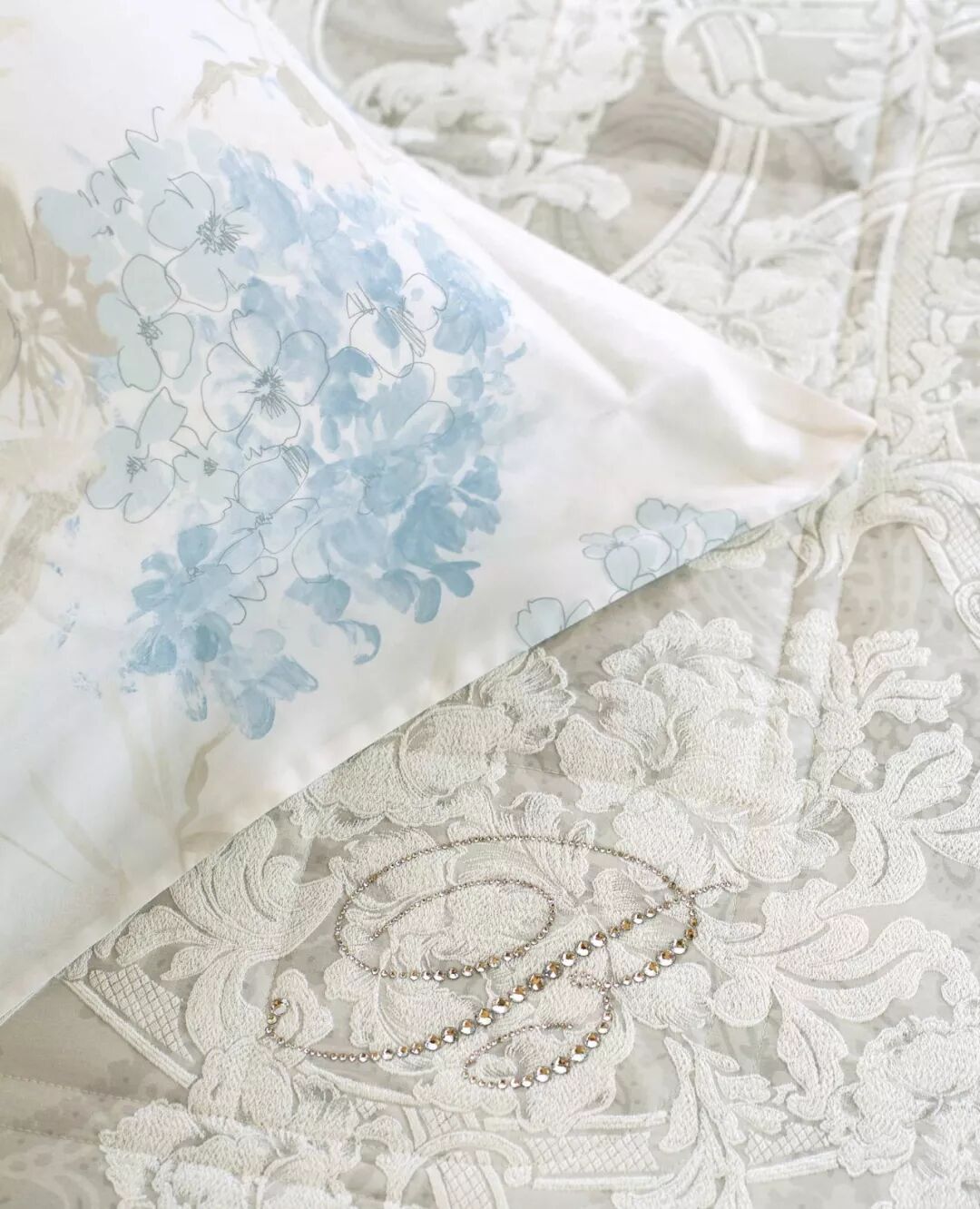 Blumarine 在面料上采用上等的精梳全棉,设计上注重女性的需求:淡雅的米色系、温暖的粉蓝系以及提花、绣花等工艺的综合搭配让您的家优雅又舒服。