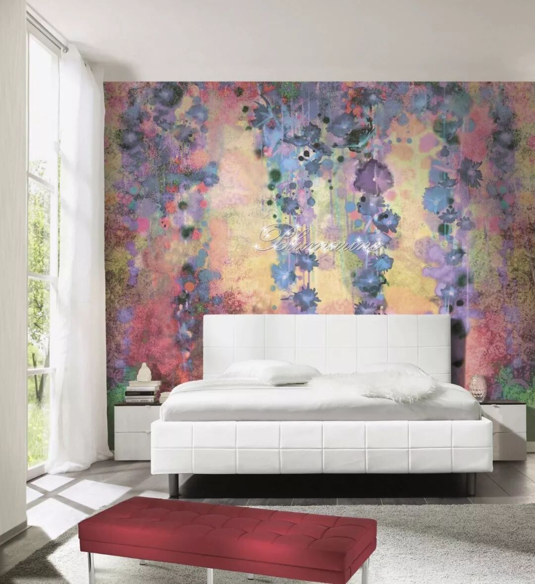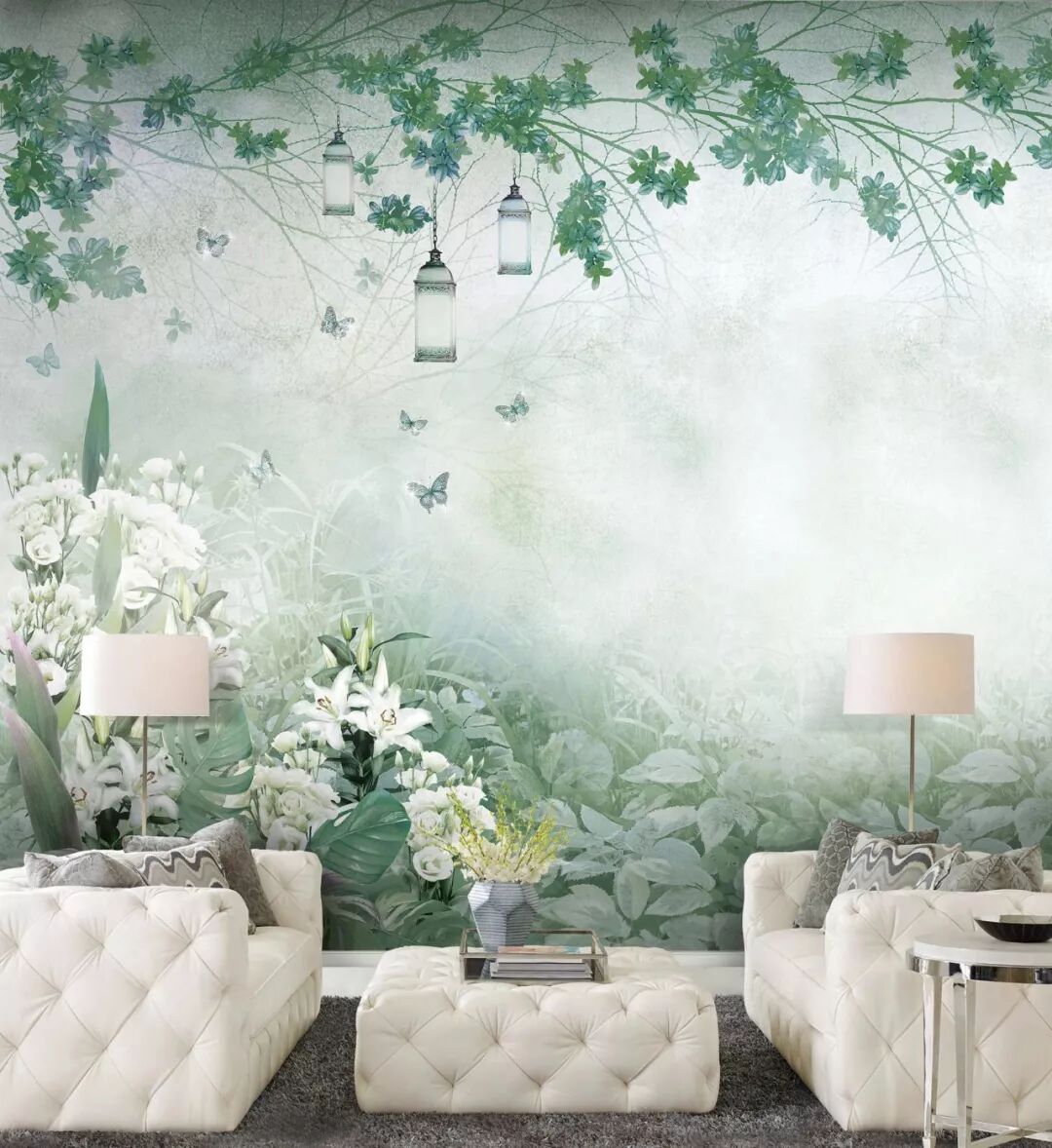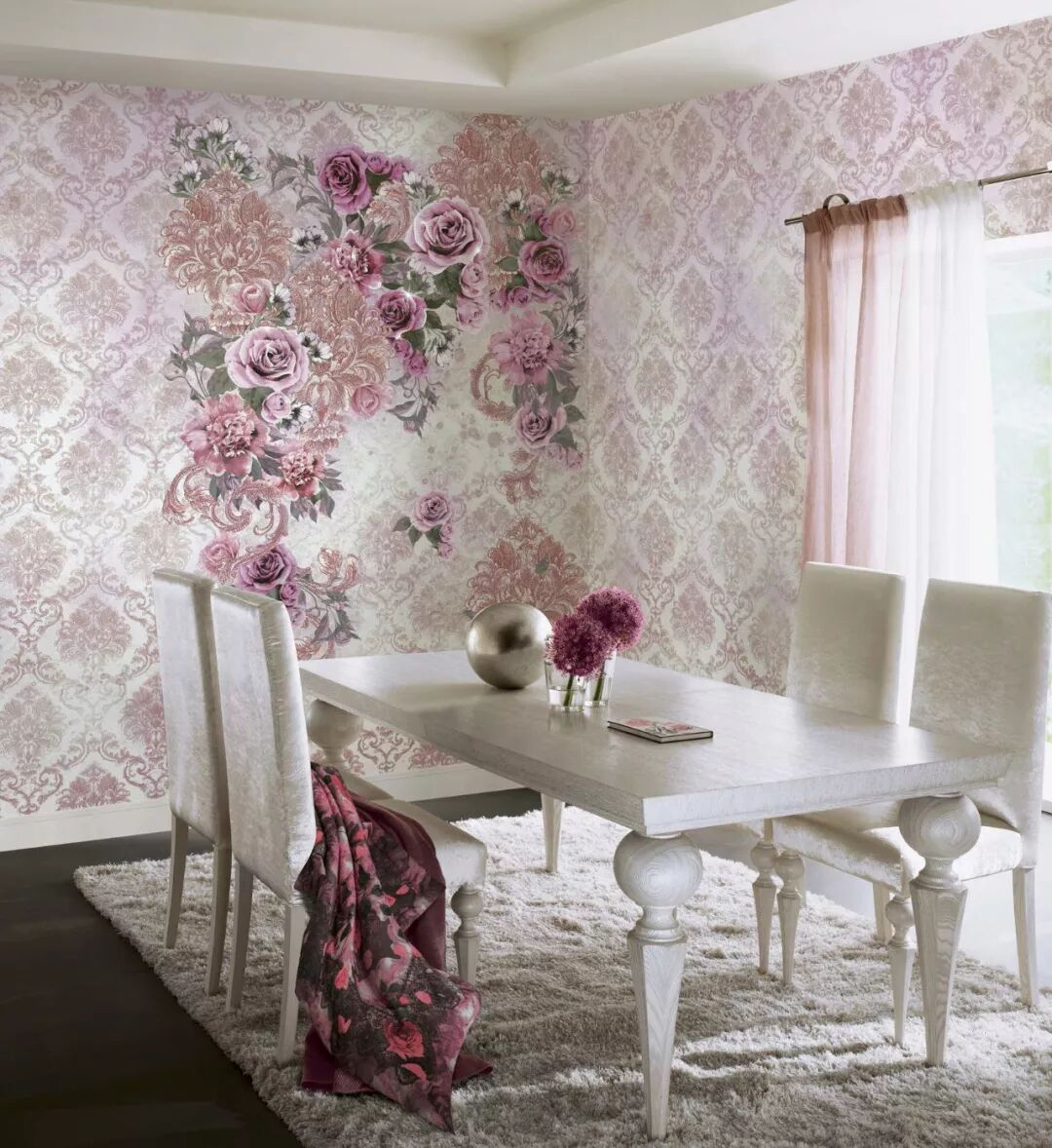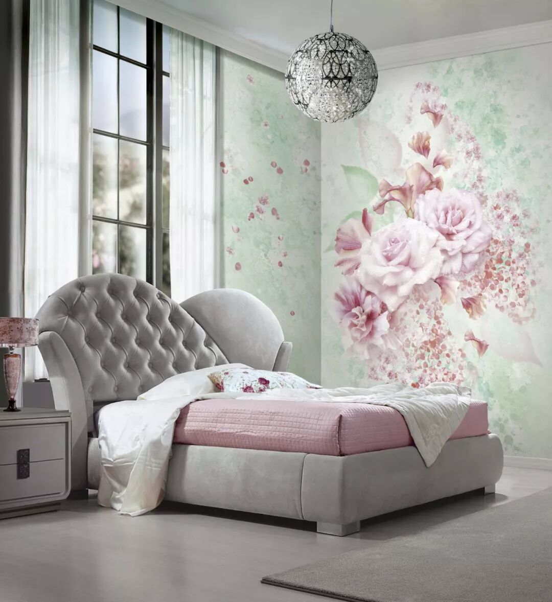 优雅的色调、柔和的花束、珍贵的树叶、丰富的刺绣在墙上绘制出迷人的风景。