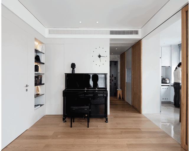 我们加强了收纳功能,吊柜,一整排的收纳柜,