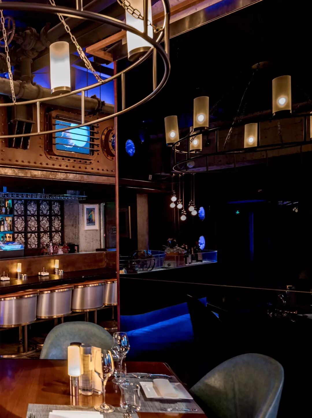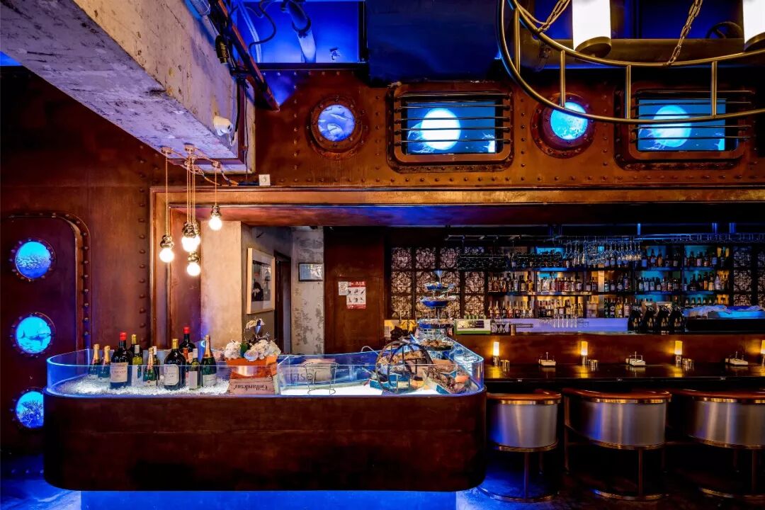 ▲这个餐厅可以被描绘成“身处深海中用餐,营造与海洋生物触手可及的奇幻感觉”,设计者希望通过弱化的蓝色与暖黄色的光线,营造出海洋深处神秘的光影效果。
