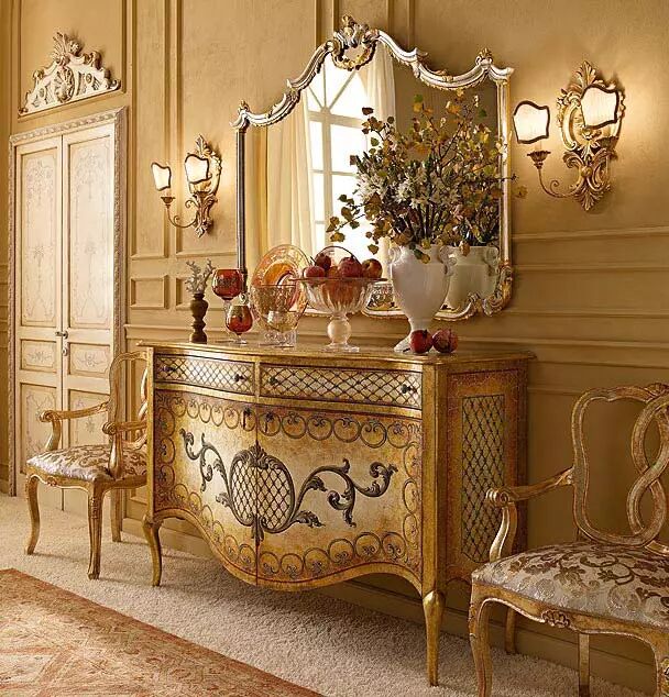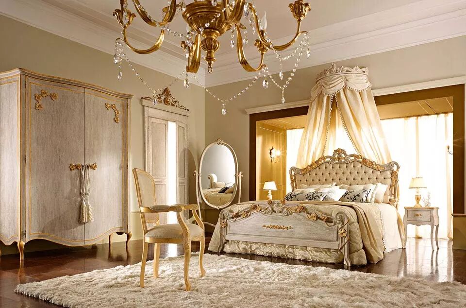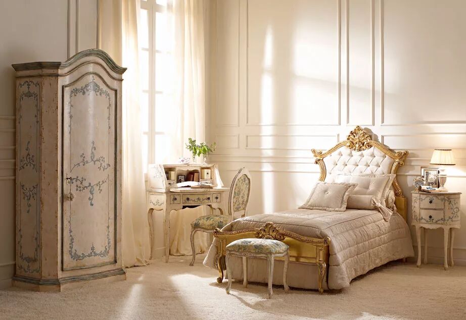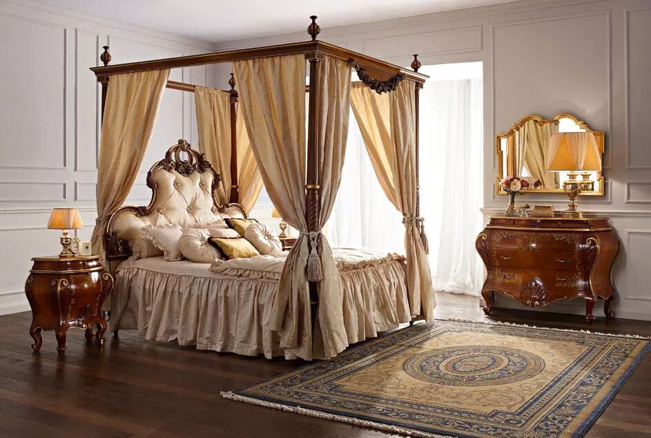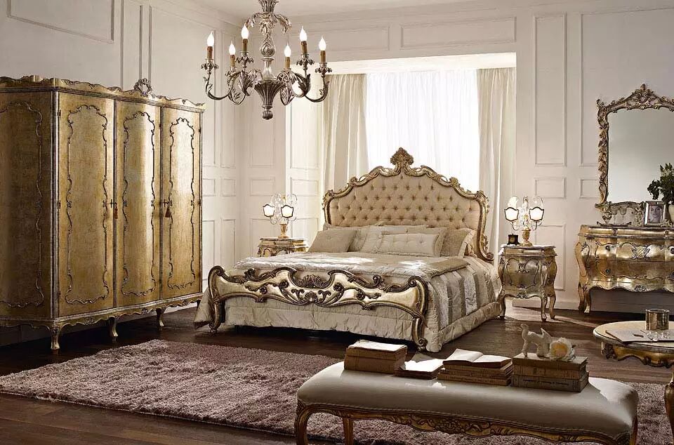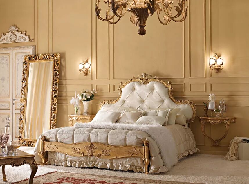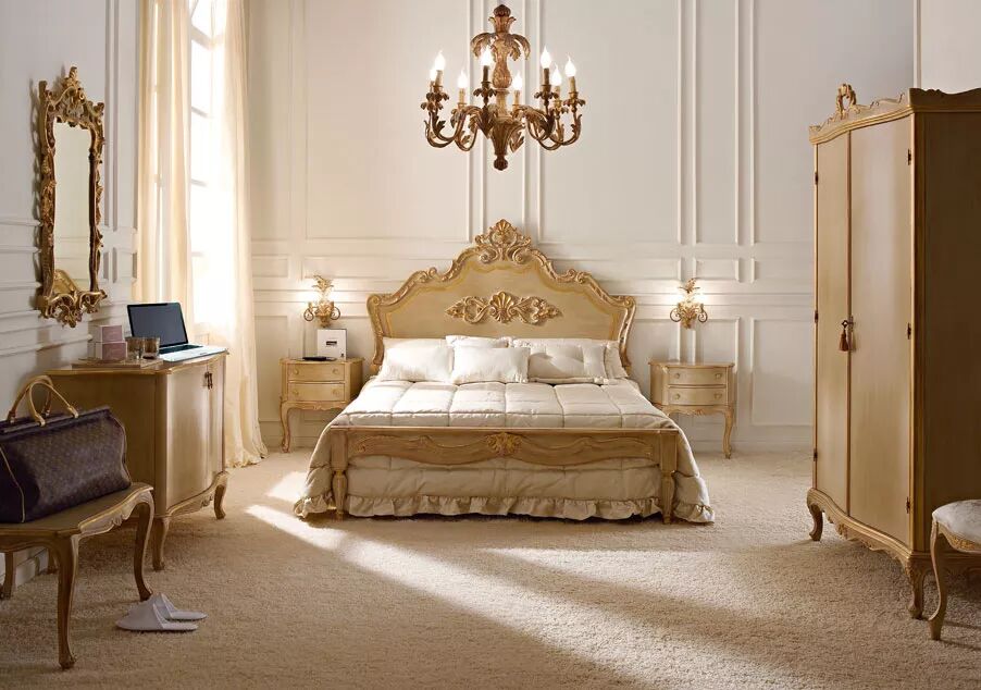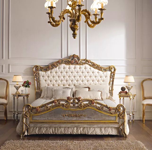 精致雕刻的床、华丽的镜子、宽敞的衣橱以及脚凳和床头柜等这一系列的卧室家具全都是手工制作,工匠们使用最优质的材料和无与伦比的技术,将你带入一个奢华的时代。