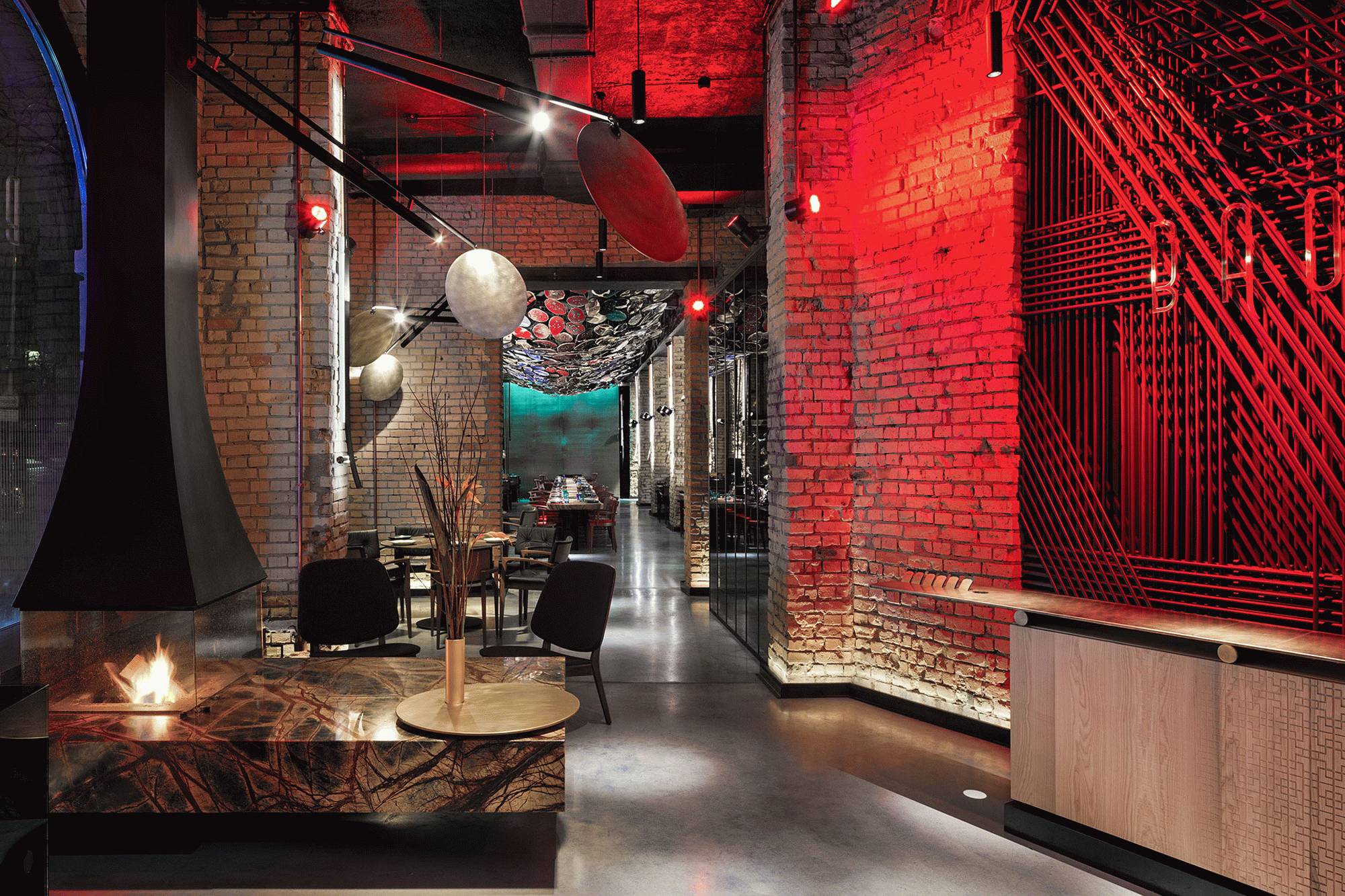 这是位于乌克兰的一家现代风格的中国餐厅,面积600平方,设计师用东西方的文化为设计灵感,为我们呈现 一个热烈、怀旧又带点摇滚风的餐厅。