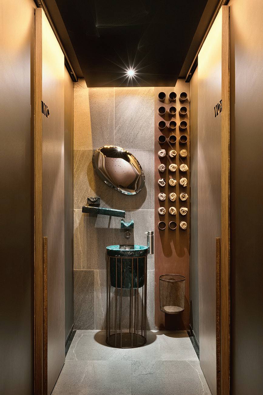 枯枝小景的营造也特有有气氛,犹如一幅安静的画,卫生间的设计运用了行云流水和滴水穿石的理念。