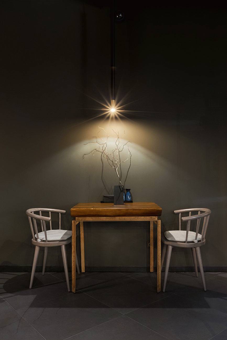 灰色的不规则吊灯像一个个灯笼,被设计师巧妙的挂了起来,既有创意又有亮点。