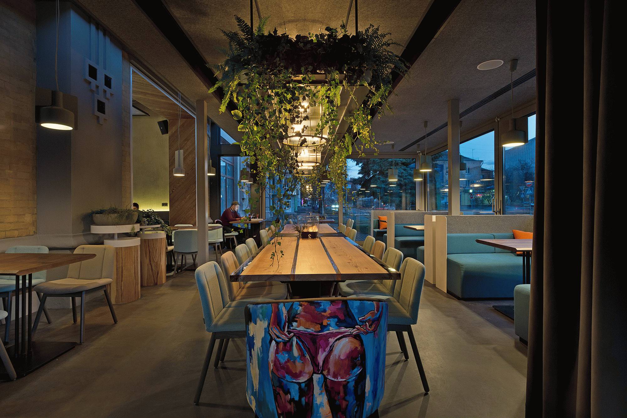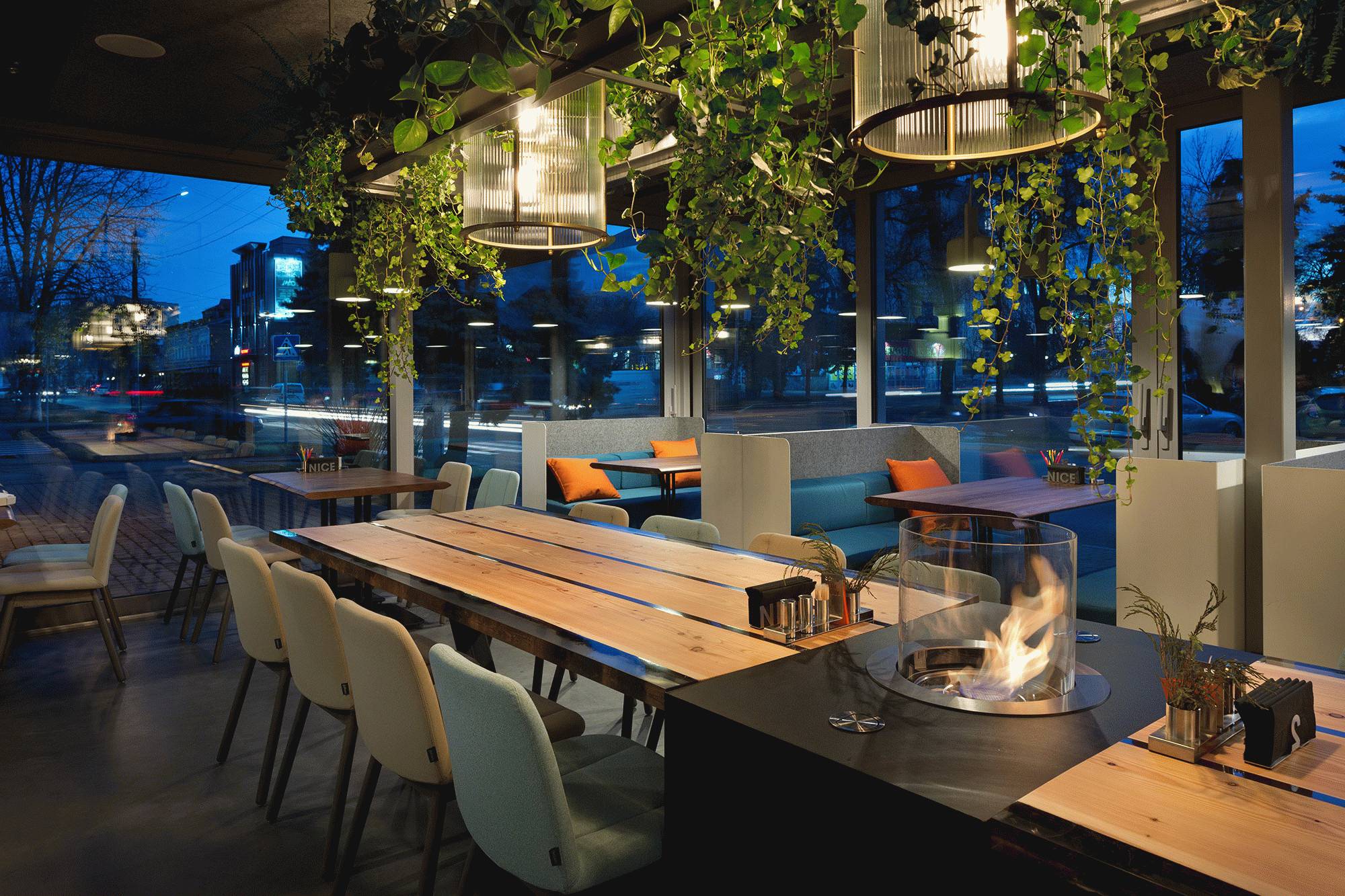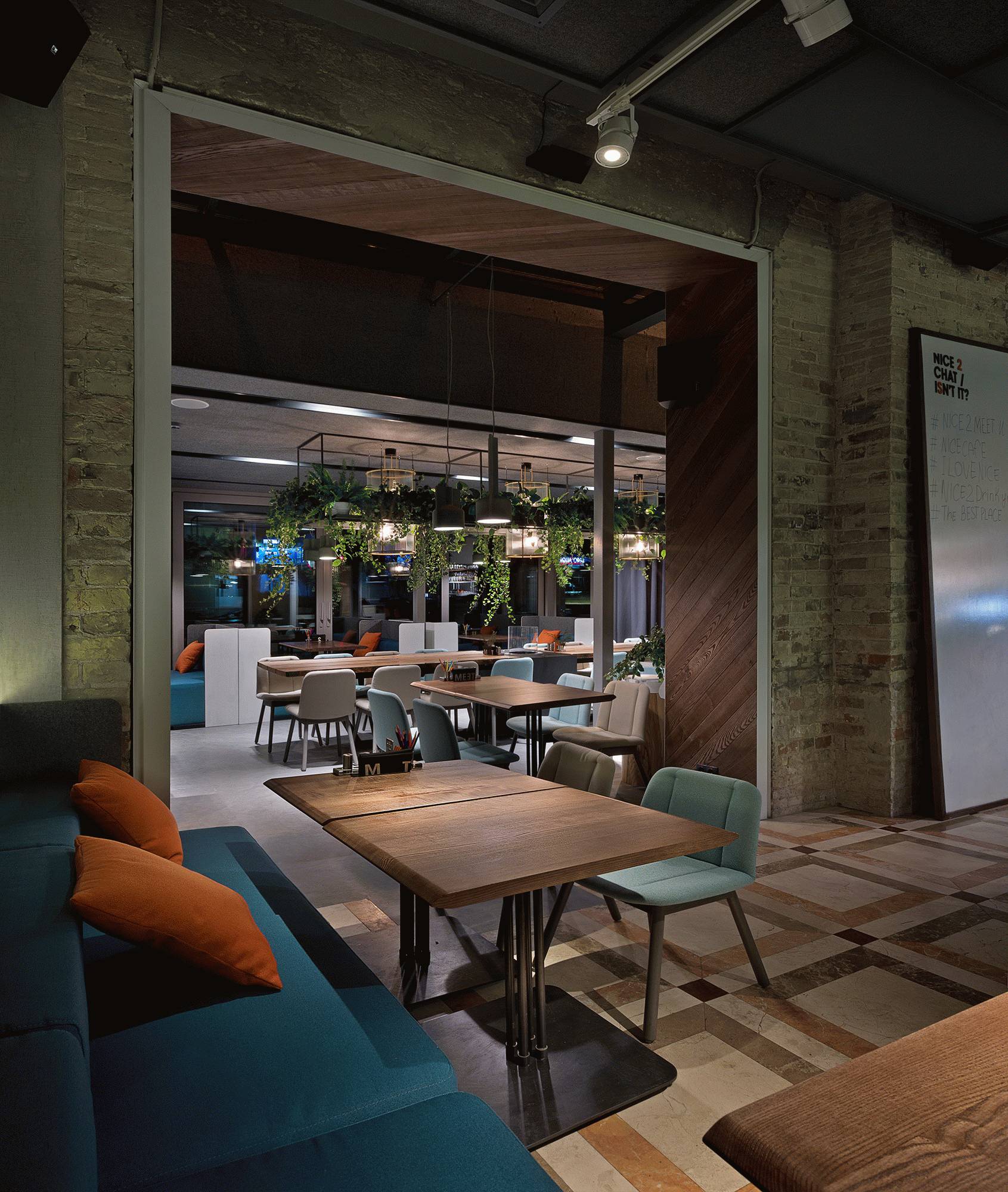 这家餐厅位于乌克兰赫雷夏蒂克街,设计风格清新自然,想营造一种舒适的度假空间。
