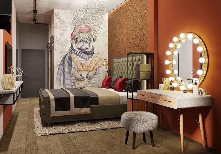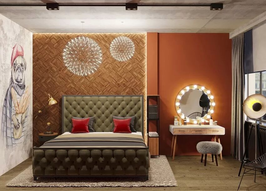 主卧涂绘暖棕橘营造惬意的舒眠场景