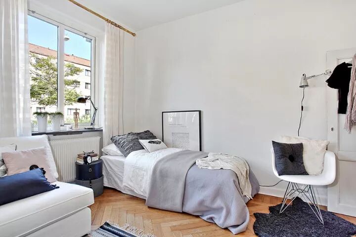 北欧风就是这样对于卧室的要求,总是这么简单又随意,一个角落,一个单人床,就可以算作是自己的卧室,简单的如此任性。