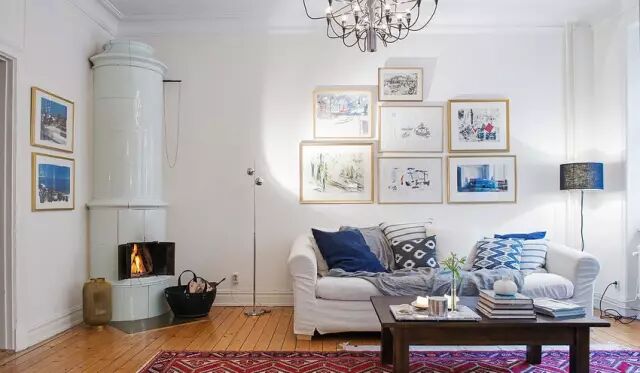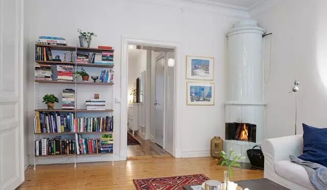 想必这个客厅中让大家第一眼看到的便是这个壁炉了吧,满满的西式风情;另外,客厅的整体色调上也是设计得既简单又亮眼!