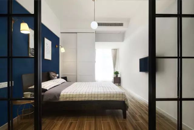 卧室门改成玻璃推拉门的形式,也是为了间接采光的效果。