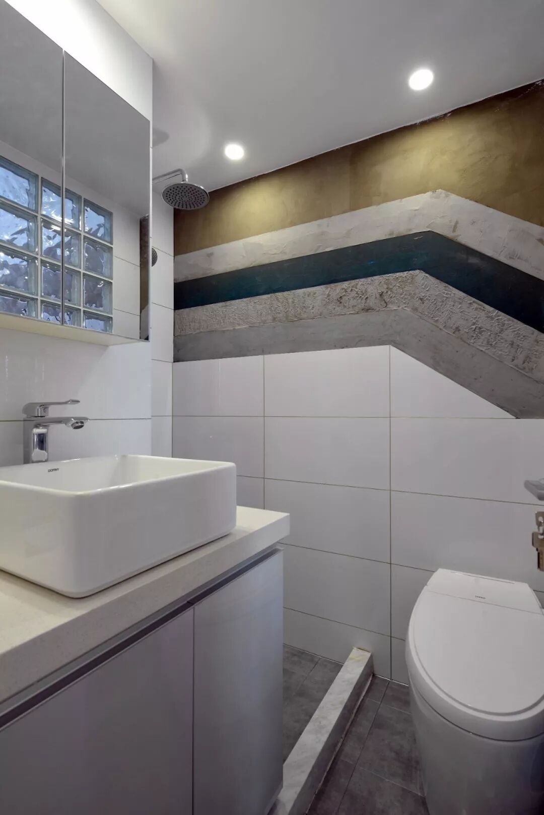 卫生间的灯光设计的非常合理,保证亮度同时显得更加整洁。