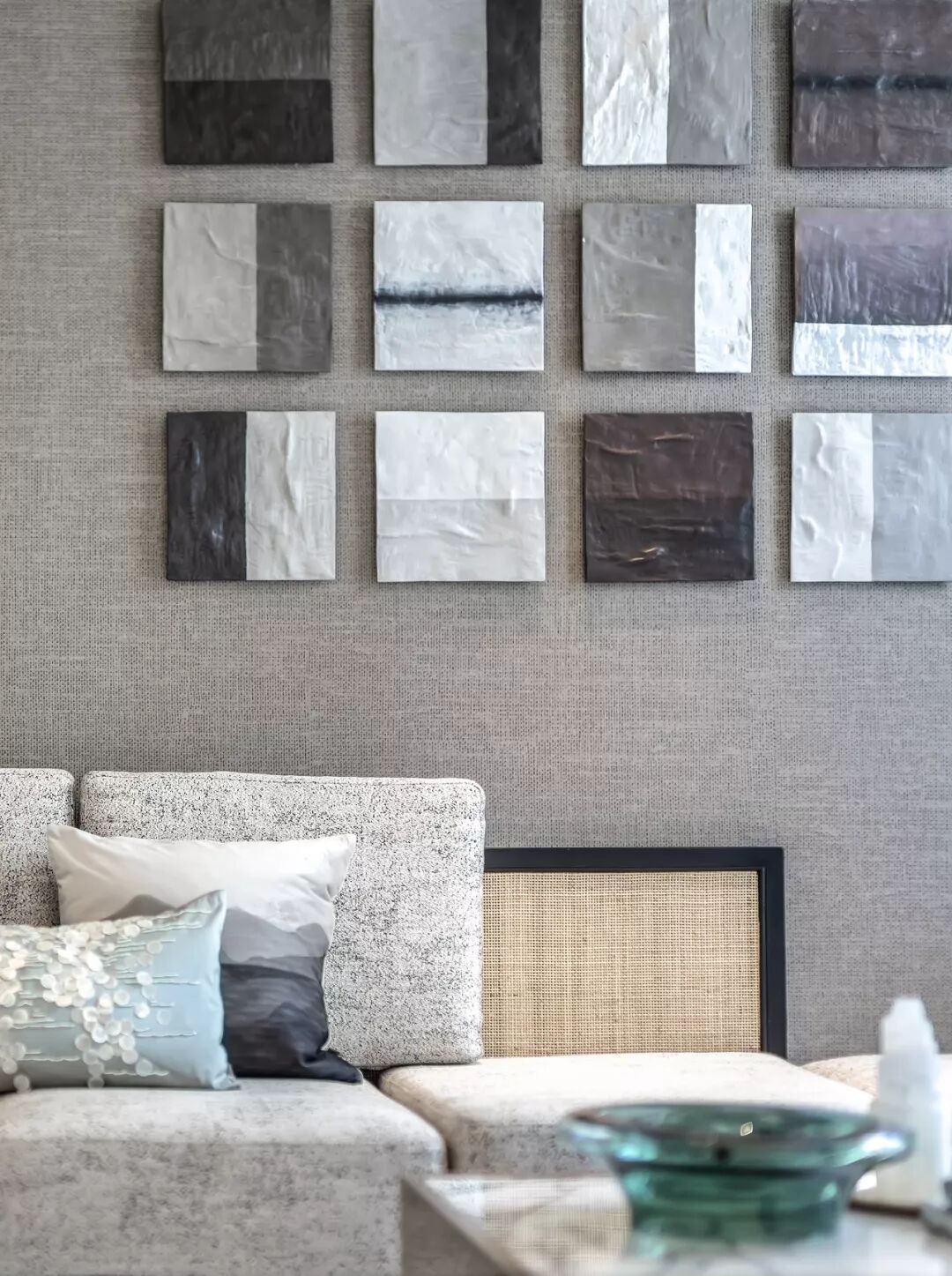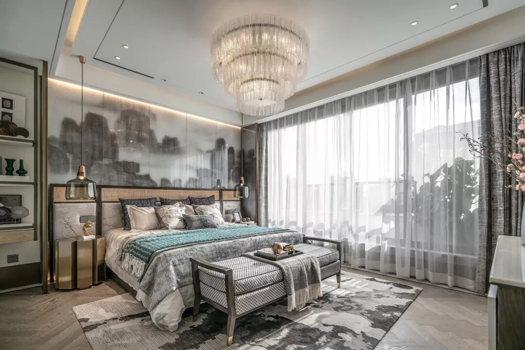 不同主人的卧室空间,均以营造静谧为前提,用不同程度的灰色糅合现代风尚,在内敛与品质之外,融入东方元素。