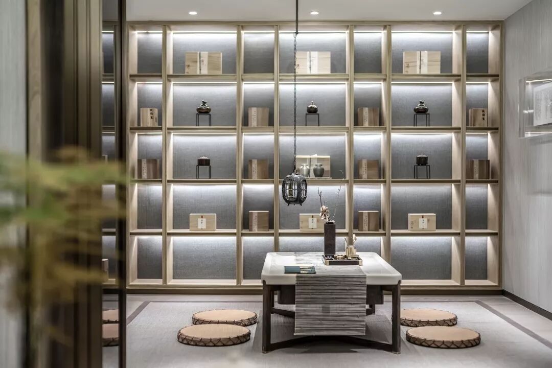 茶室设计以简淡为尚,将文仕的风雅与现代生活融合,追求和体验人与自然契合无间的人生境界和精神状态。一张古朴的茶桌,以实意虚,一壶清茶,静守时光,共待流年。