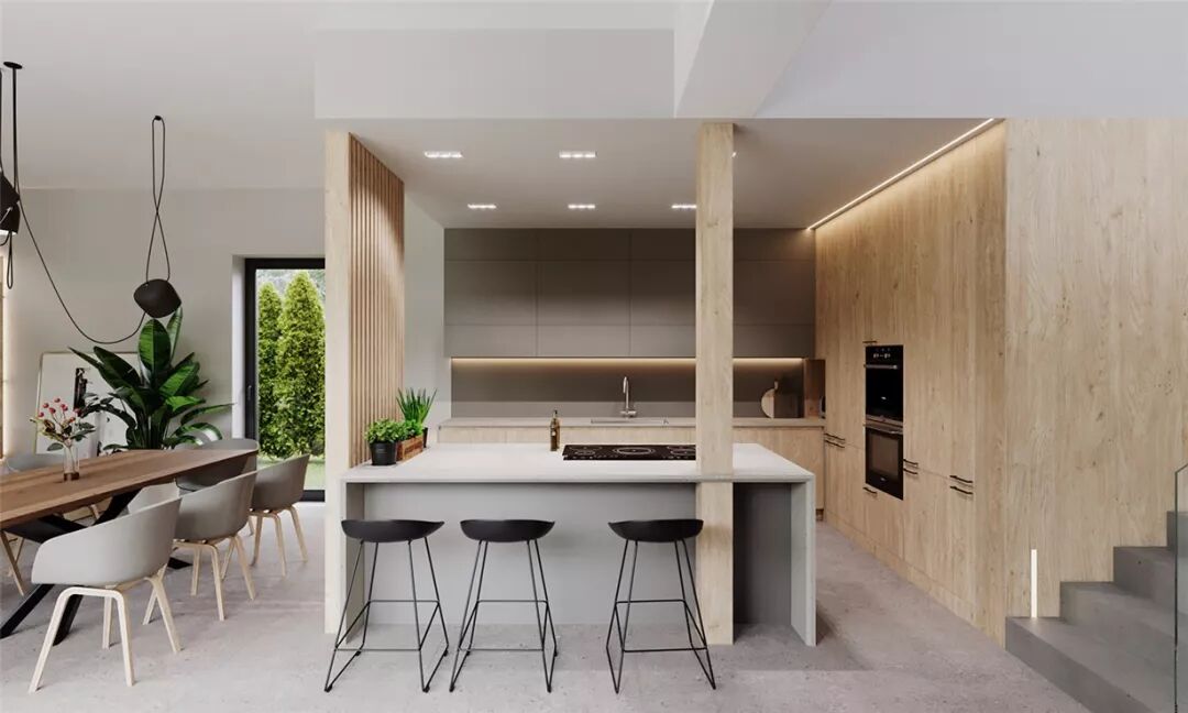 这是由设计团队 Studioe 负责完成的一个案例(效果图),位于斯洛伐克,双层的建筑拥有高挑的天花,明媚的光线,甚至是屋外的自然景色,也如同画作般美丽,遵循了设计中简约却不简单的法则,色彩与材质互相搭配,装饰品与自然丰富点缀,这里显得美好而温暖。
