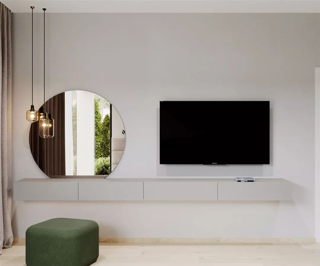 ▲定制的家具也成为了室内的亮点,从沙发后的储物架到电视机柜,甚至是墙面的木条装饰,在木元素的串联下,温暖的气息遍布整个室内。