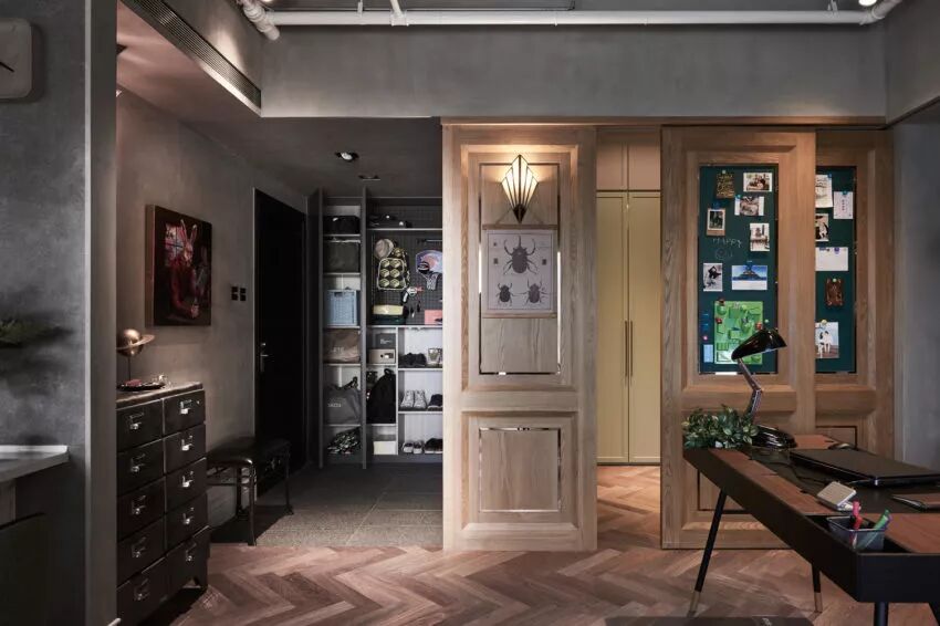 一对热爱工业风的屋主夫妇,对于家中到来的新生命,他们做了一系列的考虑,包括:如何在同样面积中增加储物空间,如何在继续工业风的氛围中,确保满足孩子的审美以及游玩的乐趣,最终,所有的问题都被HAO Design的设计师Ivan Chen解决,改变传统的设计概念,重新架构整个功能区。