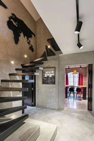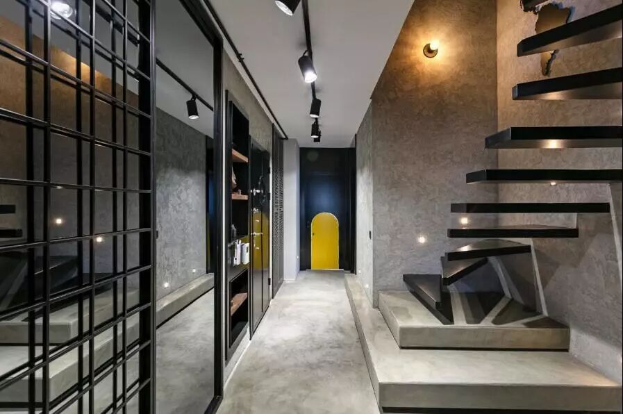 ▲室内的每一处,都不乏有小物点缀,旋转而上的“悬空”楼梯旁是带来照明的内嵌灯,墙面上则是与整体和谐的黑色装饰画。