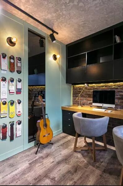 ▲屋主从事着与音乐相关的行业,所以时常需要在家办公,或是一片私密区与来访者进行讨论,设计师为屋主规划的工作区里,除了丰富的材质外,可以带来灵感的装饰物,也为这里增色不少。