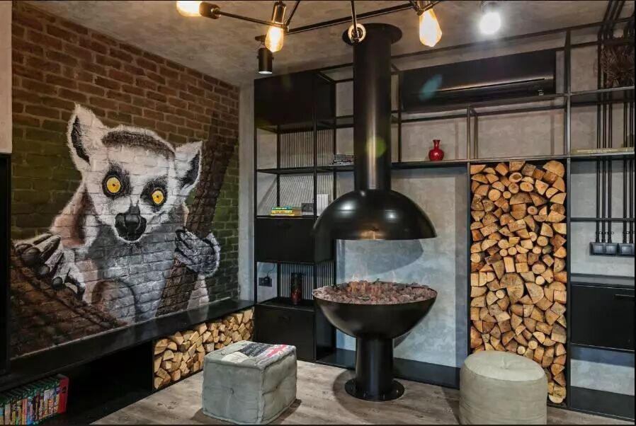 ▲全新的改造,却也使用了许多的“旧”元素,对于工业风的把握,设计师并没有完全的循规蹈矩,可以是铲除表层后的混凝土墙面,也可以是舒适柔软的灰色调沙发,可以是全新的定制壁炉,也可以是旧物回收利用的咖啡桌。