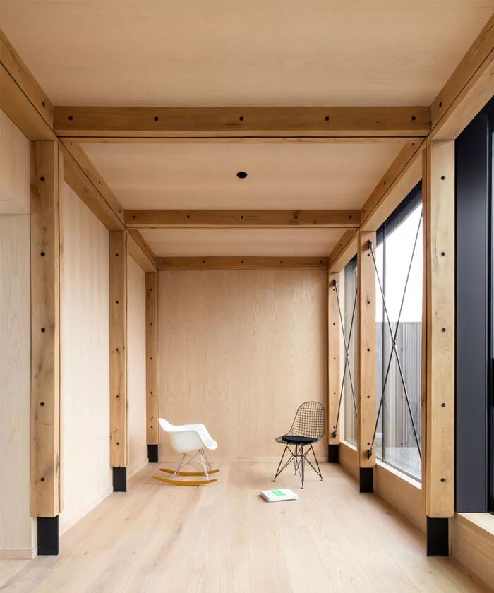 ▲二层空间更像是一个闲适的休息区,这里尽情接受着来自大自然的光线赐予,并充分利用木元素,营造出一个可以卸下疲惫的放松空间。
