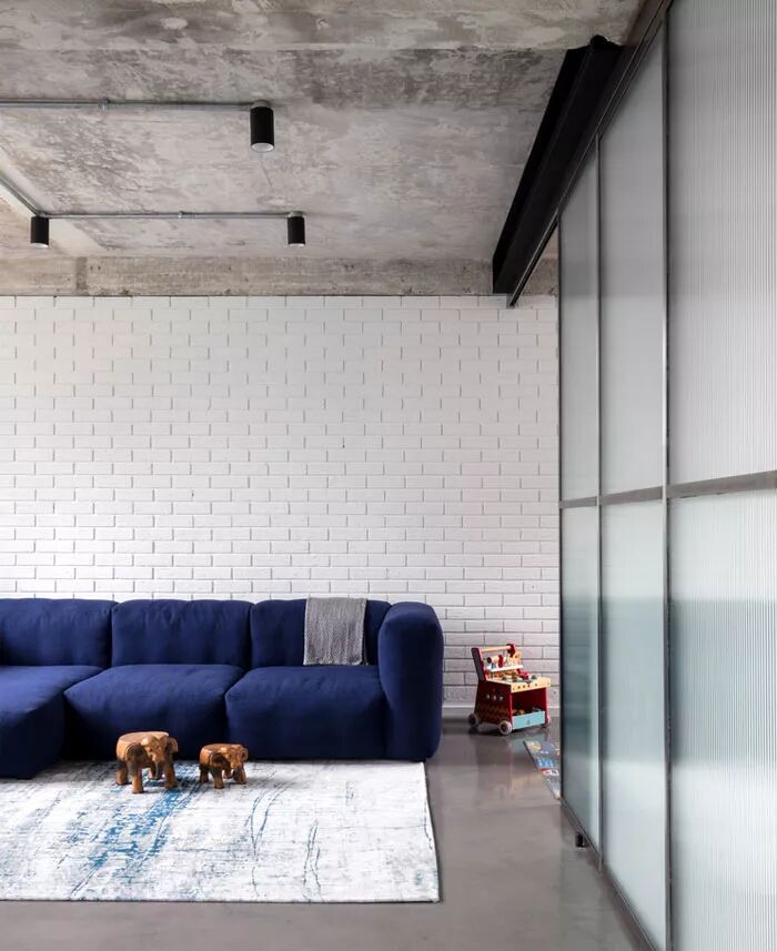 ▲不仅仅是工业风的清冷,有了孩子的空间更需要一些温暖与色彩,充沛的光线下,木质家具与宝蓝色的器皿,都成为了平衡空间的元素。