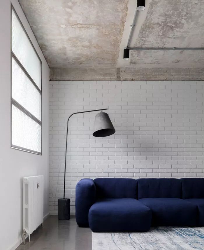 ▲剥离了原先的墙体,天花与横梁全部呈现出了原始的混凝土面貌,涂白的砖墙,裸露的金属管道,硬朗质朴的工业风成为全新空间的组合形式。