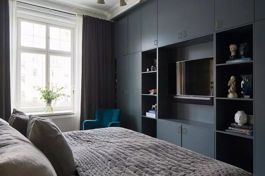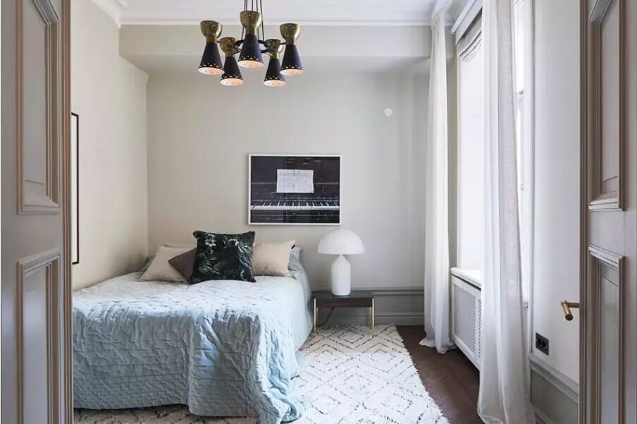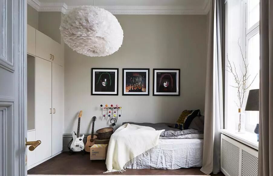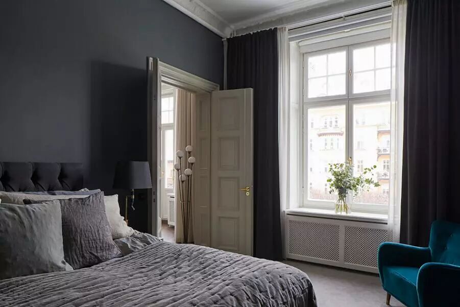 ▲屋主是大胆的,因为在明朗清新的北欧风中,她加入了深灰、湖蓝的浓重色彩,以静谧的氛围营造睡眠空间。