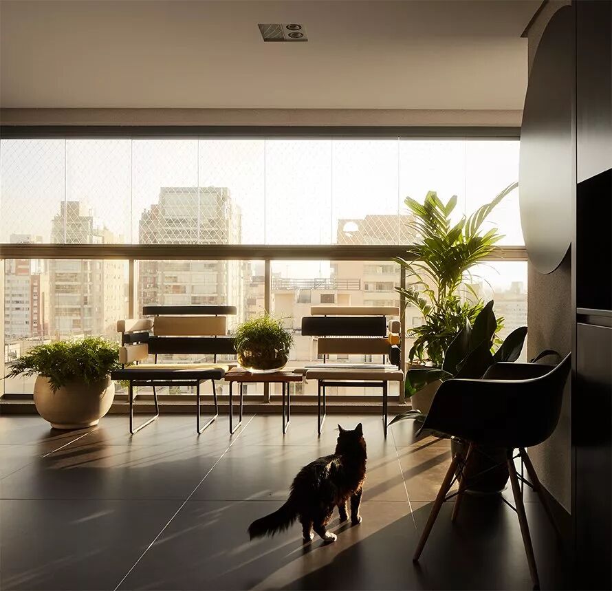 ▲公寓拥有一个宽敞的露台,原先的屋主按照常规需求将露台空间并入室内,而当现任屋主买下这里后,为了他们的家人之一“猫”,决定按照公寓最原始的格局来,留下宽敞的露台空间,给“家人”玩耍。