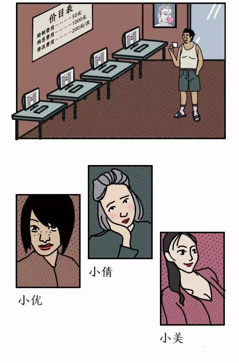 我仔细的打量了她们,都有着黑眼圈、轻微的鼠标手、微微的高低肩、个别还有点驼背。这些体态特征,都是她们长期在电脑面前劳作的结果。也是高阶设计师身份的象征。最后,我选了黑眼圈最深的小优,并且从侧面看她驼背的比较厉害。相信她有着充分的经验,给我带来最好的服务。